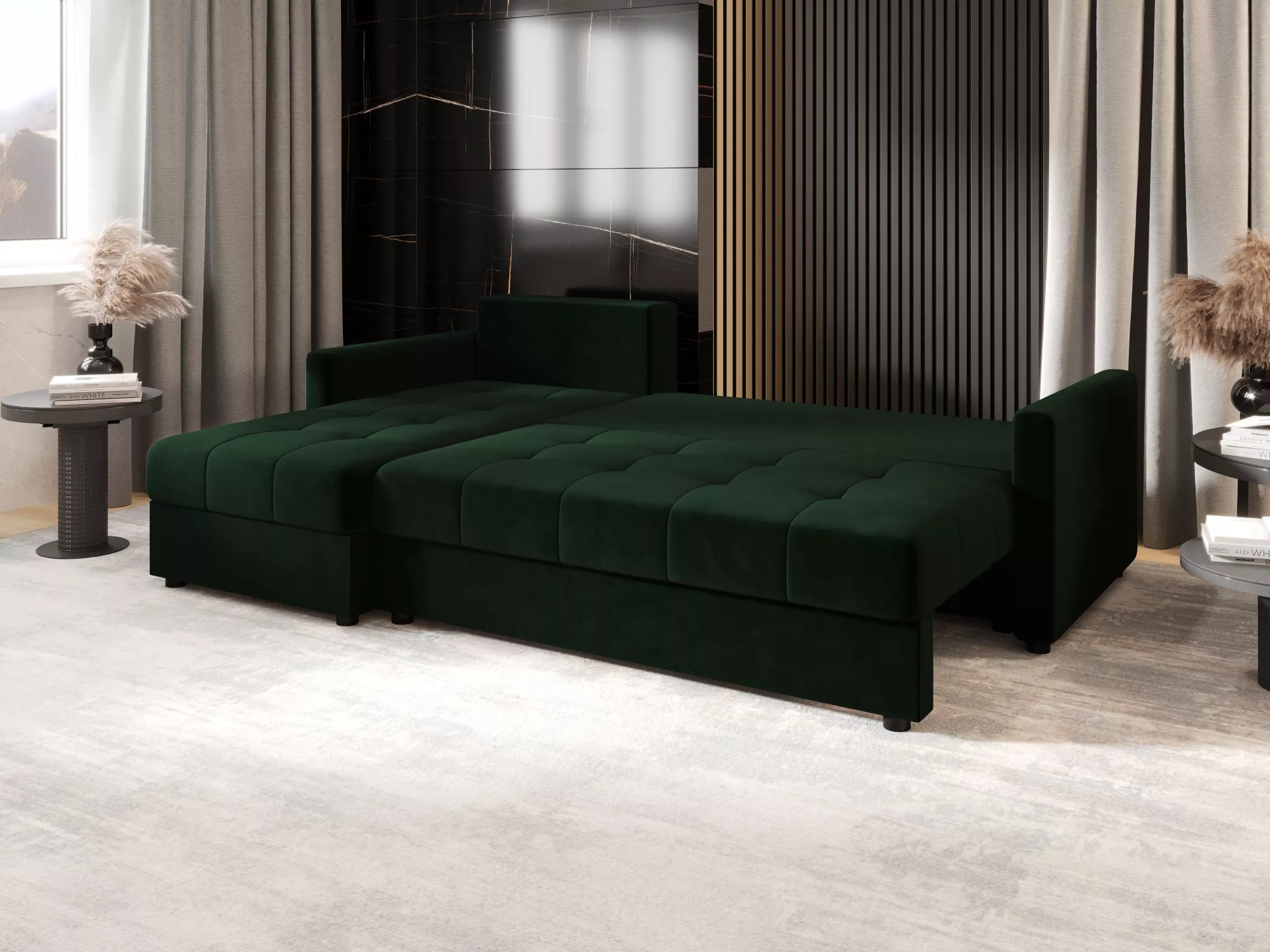 Rozkládací sedací souprava ADELINDE - tmavě zelená, levý roh