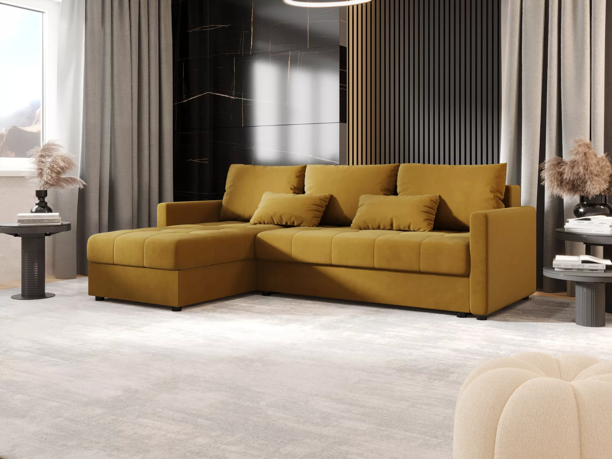 Rozkládací sedací souprava ADELINDE - hořčicová, levý roh