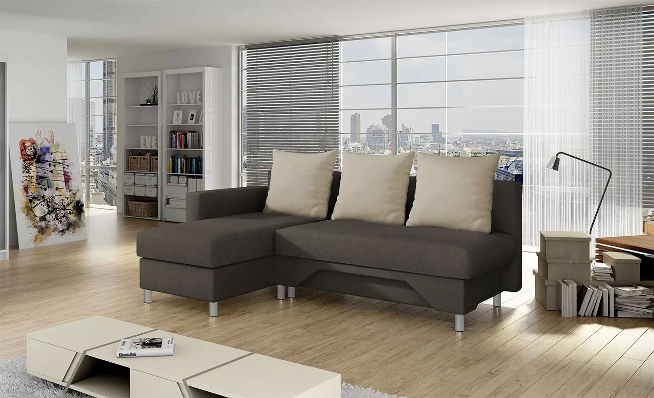 Rohová rozkládací sedačka MONITOS - hnědá 1 / béžová, levý roh
