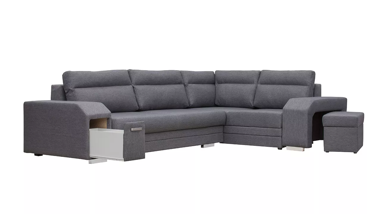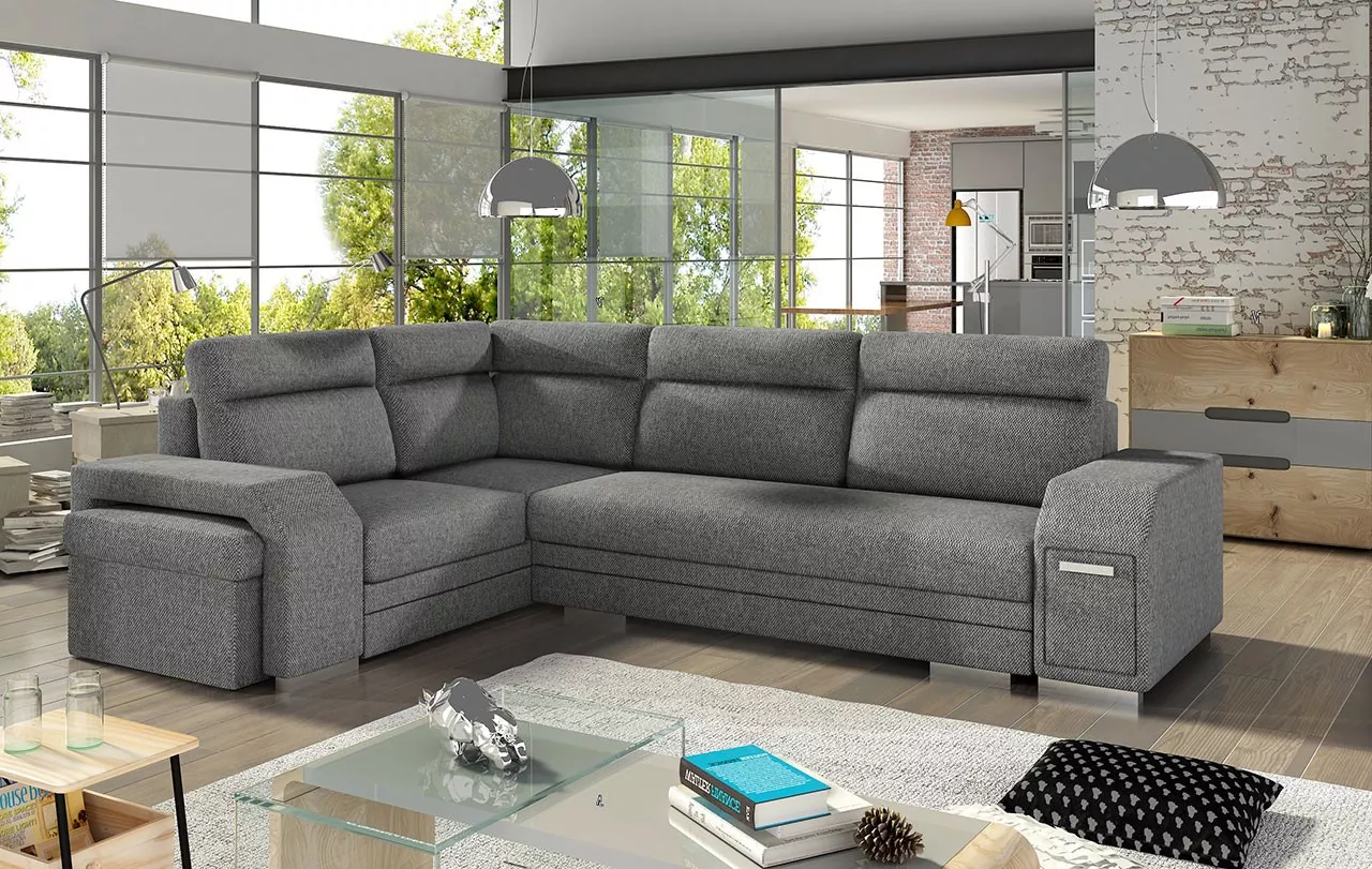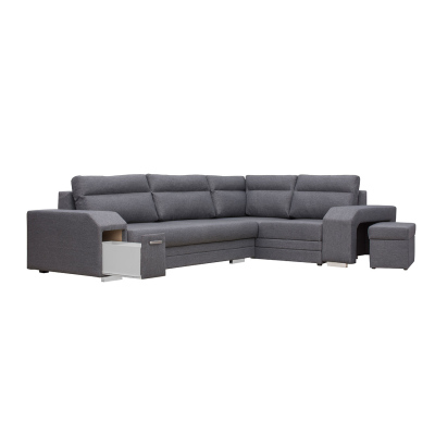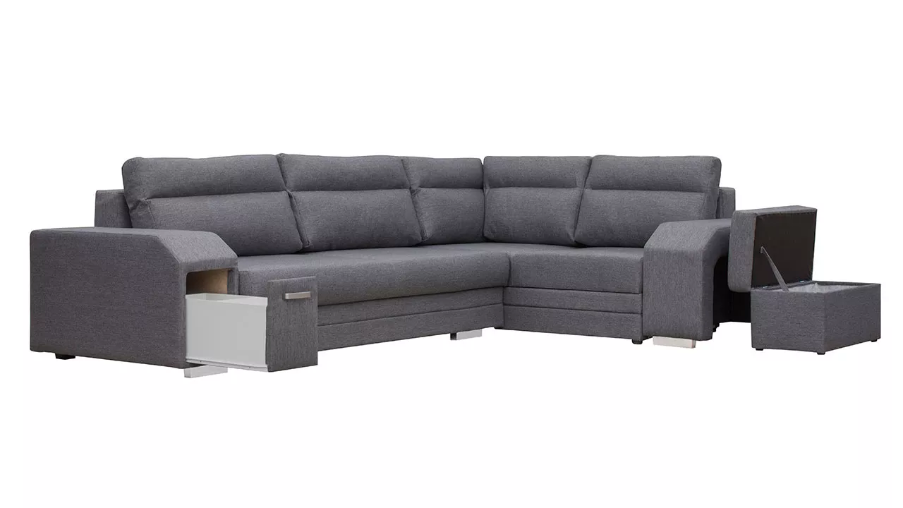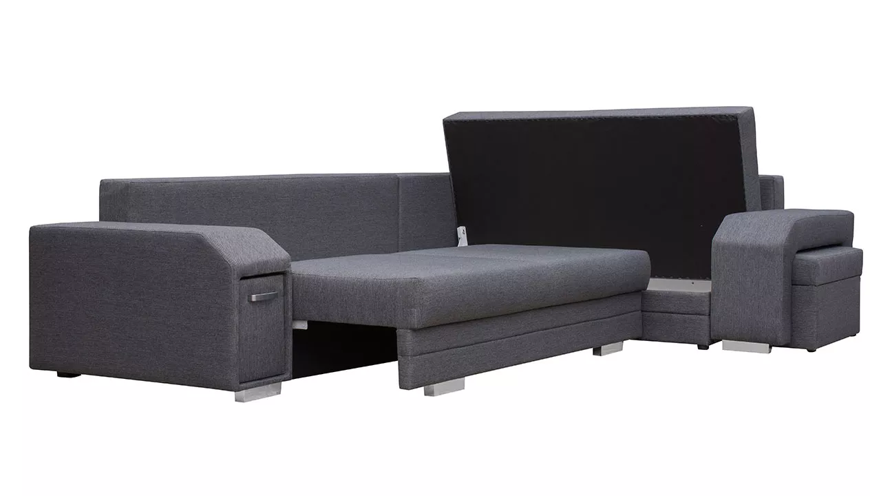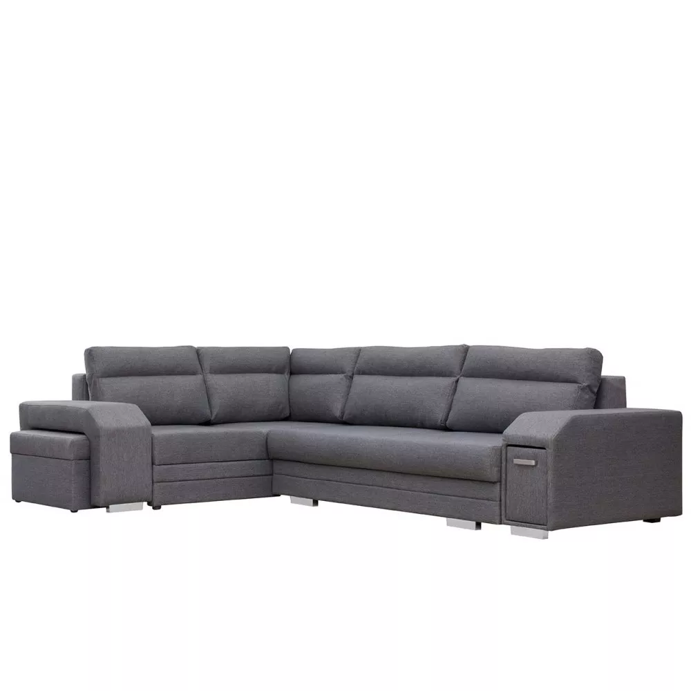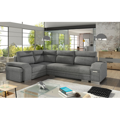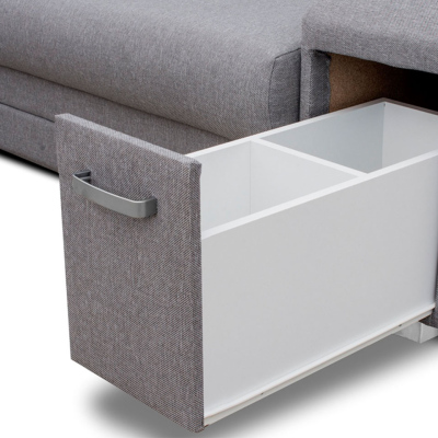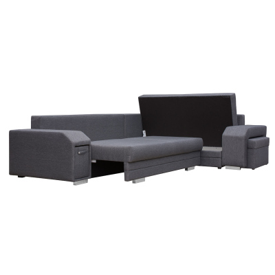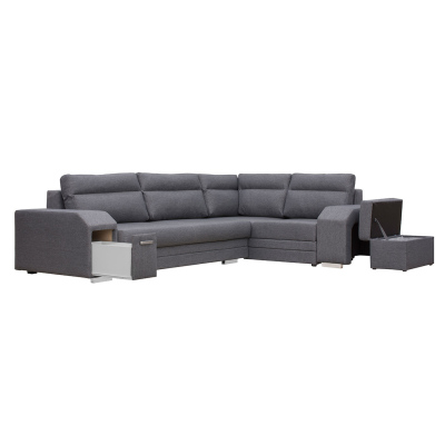 Rohová rozkládací sedačka s úložným prostorem PLANETAS - šedá, levý roh