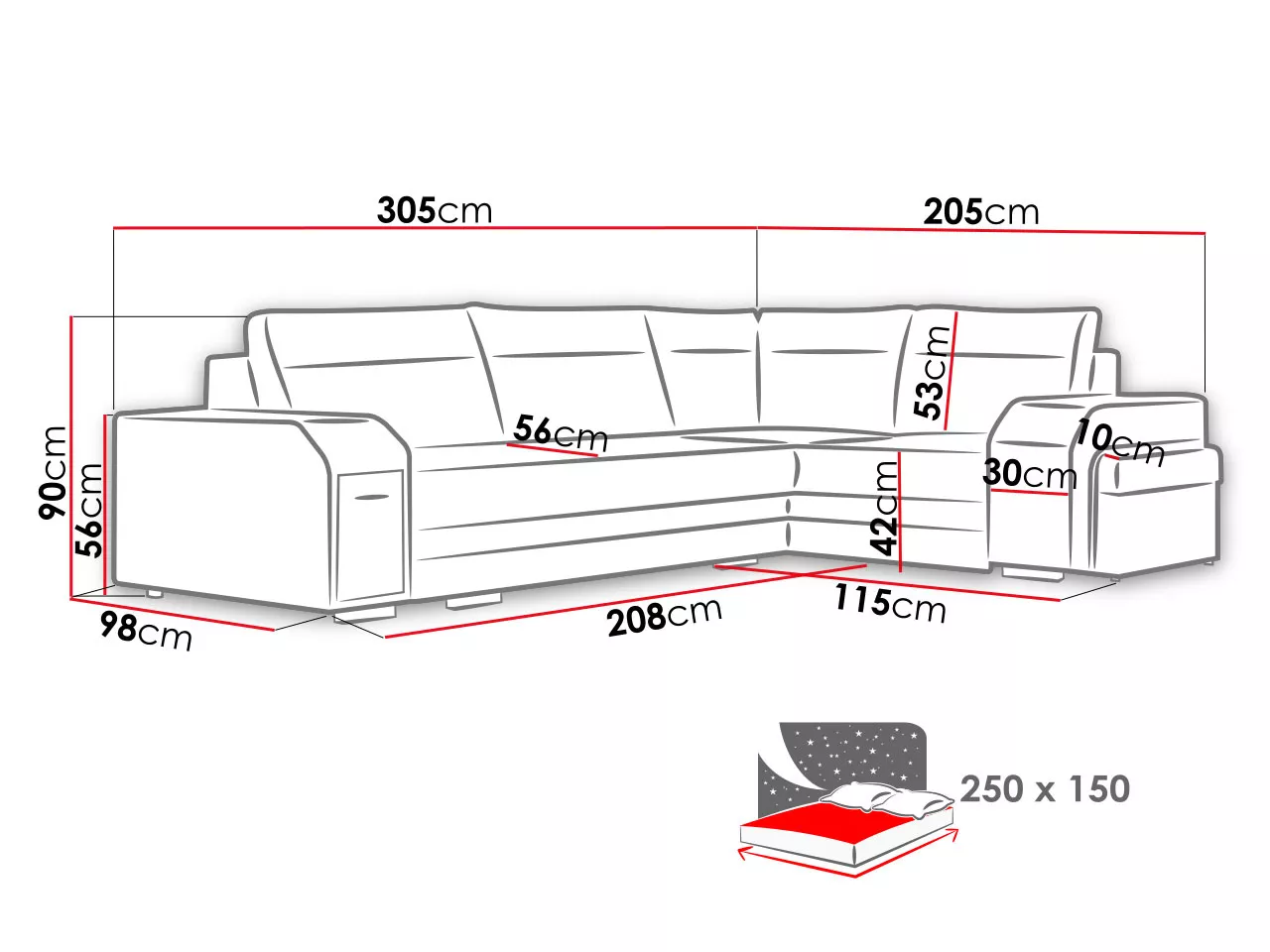 - šířka: 305 cm