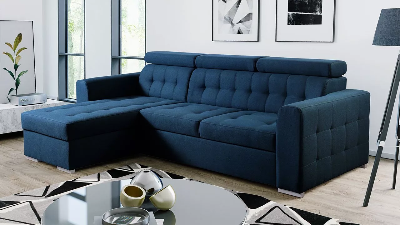 Rozkládací sedačka s úložným prostorem GRANADA - modrá, levý roh