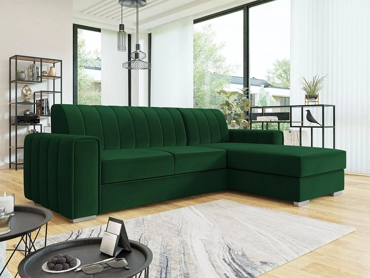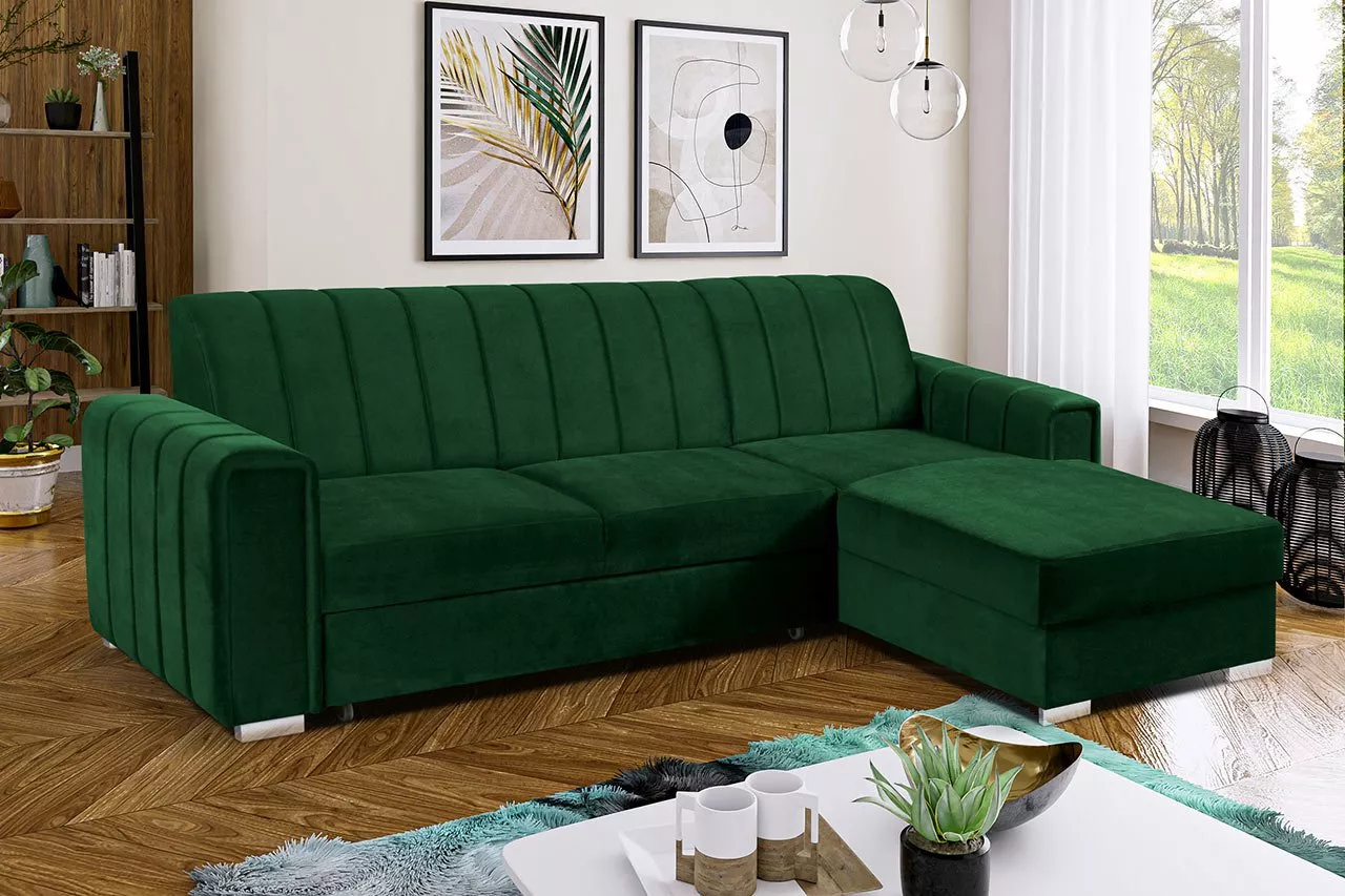 Rohová sedačka na každodenní spaní HANAKO - zelená, pravý roh