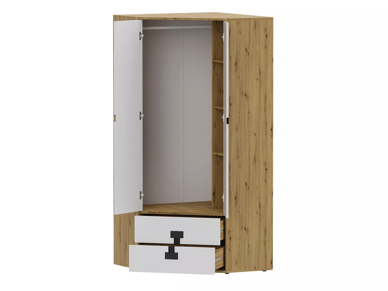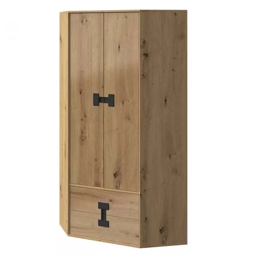 Rohová šatní skříň BASHIRA - 80 cm, dub / dub artisan lesklá