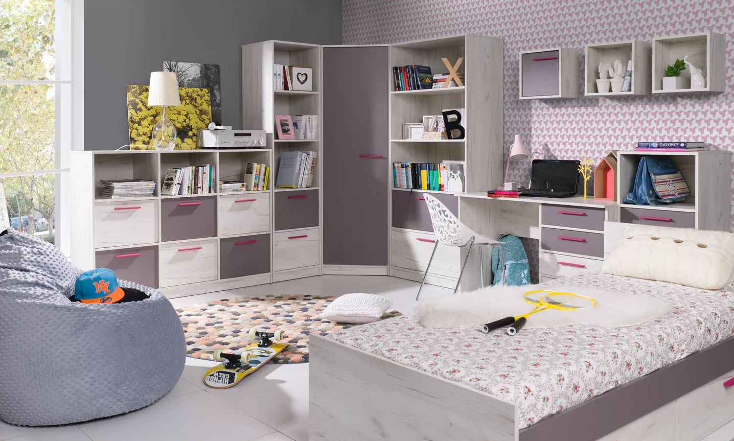 Využijte prostor dětského či studentského pokoje na maximum s rohovou šatní skříní DEANY, která kombinuje praktičnost a elegantní design. Díky chytrému uspořádání nabízí dostatek místa pro oblečení – šatní tyč na zavěšení bund a košil doplňují prostorné police pro složené prádlo, hračky nebo školní potřeby. Skříň efektivně využívá roh místnosti, čímž šetří místo a zároveň vytváří přehledný úložný prostor.
