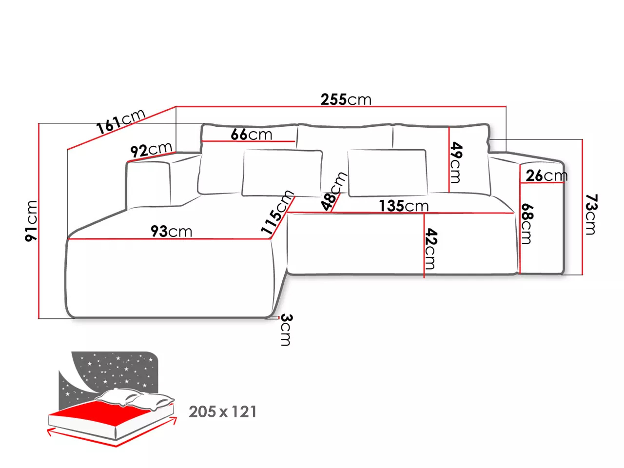 Rohová sedačka s úložným prostorem GENA je elegantním a praktickým řešením pro váš obývací pokoj. S funkcí rozkládání na lůžko o rozměrech 121x205 cm je ideální pro každodenní spaní. Navíc nabízí úložný prostor, což ze sedačky činí výbornou volbu pro ty, kteří hledají kombinaci komfortu a efektivního využití prostoru.