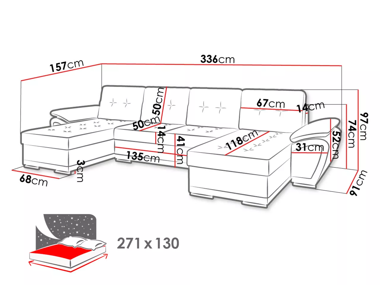 Rozkládací sedačka do U BLAIR je multifunkční nábytek ideální pro relaxaci i každodenní spaní. S jednoduchým mechanismem lze rychle přeměnit sedačku na pohodlnou postel se spací plochou 130x271 cm, zároveň nabízí dodatečný úložný prostor, což je praktickým řešením i pro menší prostory.