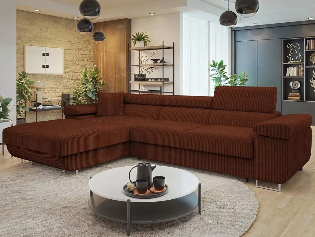 Rohová sedačka na každodenní spaní LABUS MINI - čokoládová, levý roh
