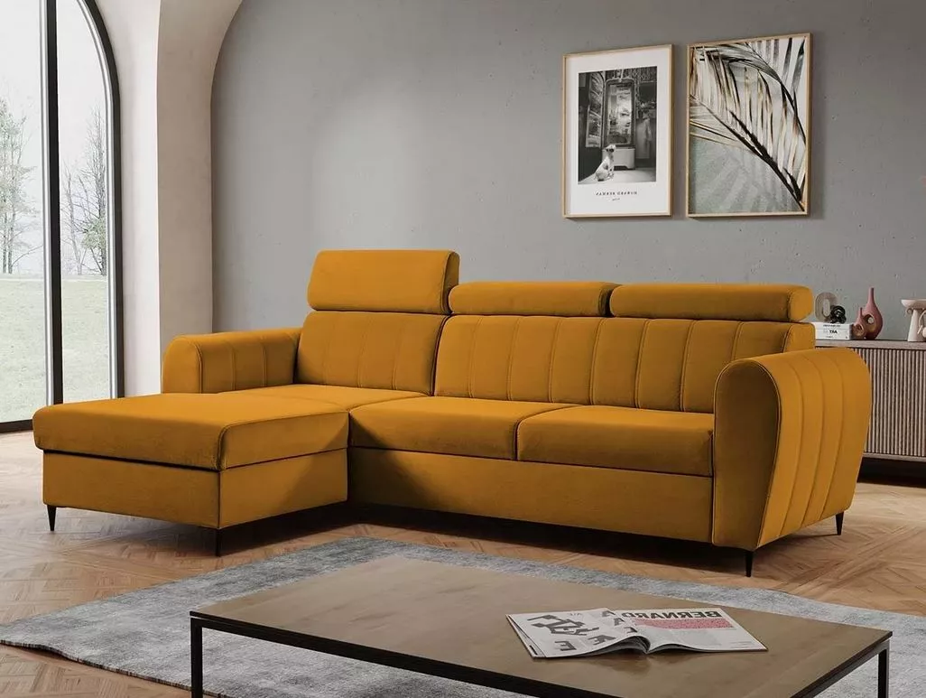 Rohová sedačka s úložným prostorem LAKEWAY MINI - hořčicová, levý roh