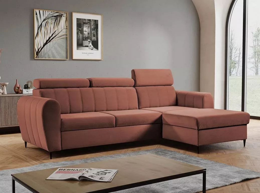 Rohová sedačka s úložným prostorem LAKEWAY MINI - indická růžová, pravý roh