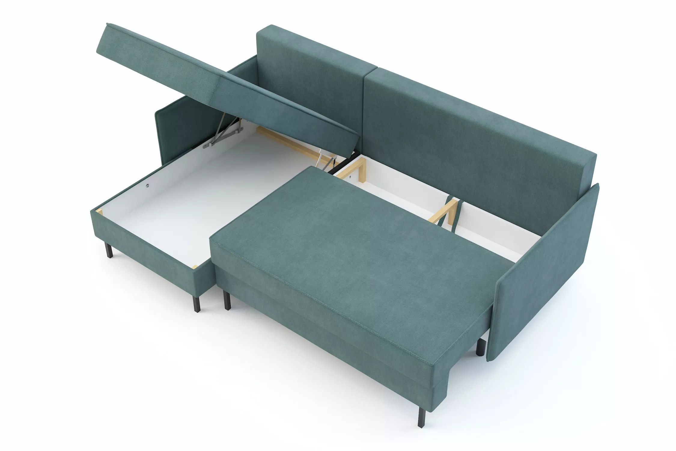 Rohová sedací souprava TIBORA se hodí do všech moderních obývacích pokojů. Díky rozkládacímu systému DL rozložíte sedačku během pár vteřin. Úložný prostor se nachází pod hlavní sedací části a pod otomanem.