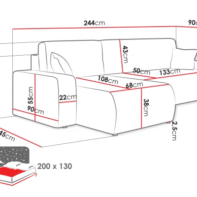 Pohodlná rohová sedačka CLEBURNE nabízí spoustu místa k sezení i relaxaci. Díky jednoduchému mechanismu proměníte sedačku v prostorné lůžko o rozměrech 130x200 cm. Nechybí ani praktický úložný prostor na lůžkoviny či sezónní oblečení.