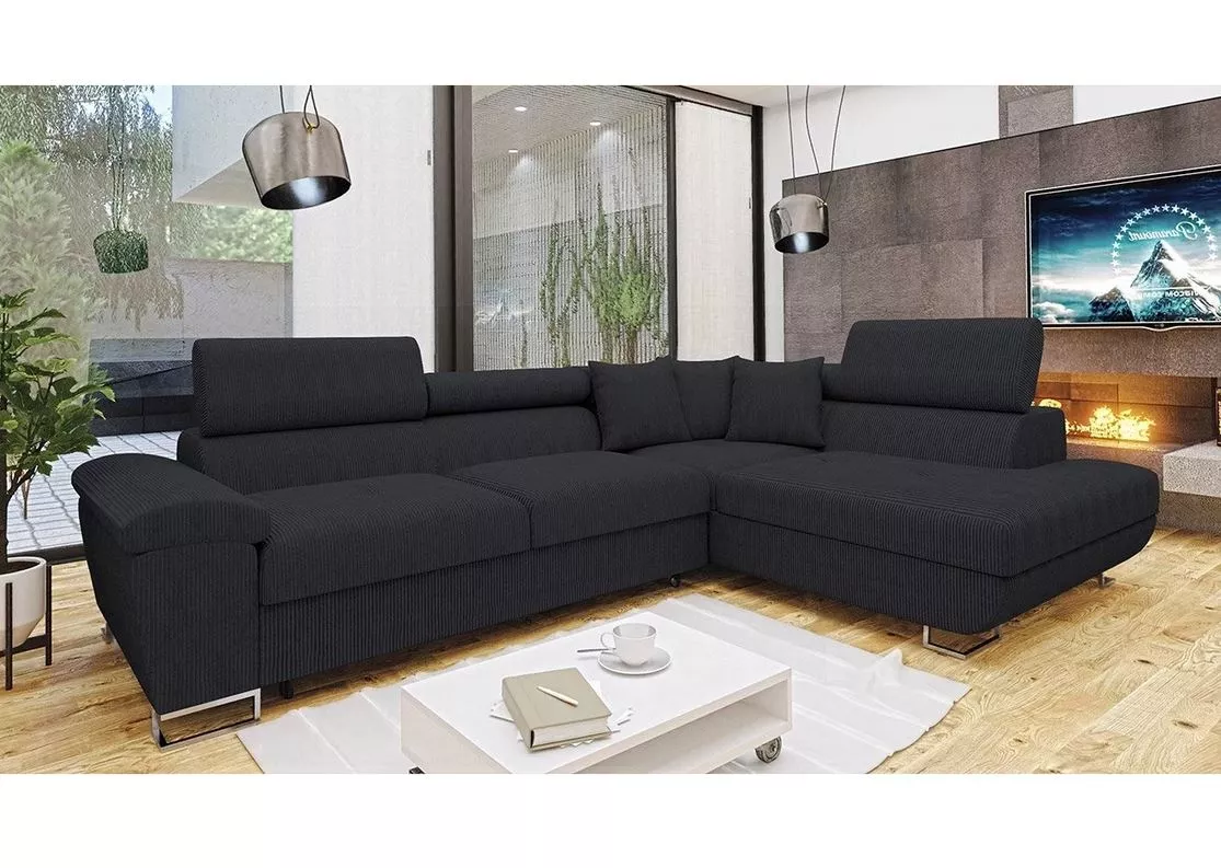 Rohová rozkládací sedačka SAN DIEGO - černá 2, pravý roh
