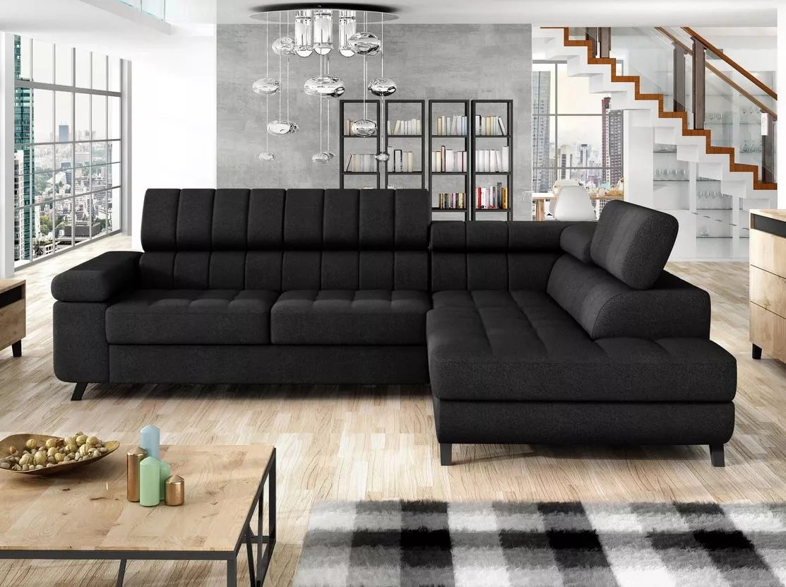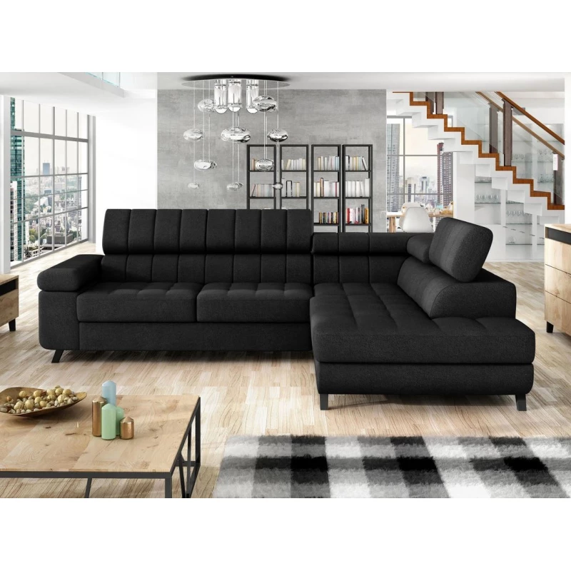 Rozkládací rohová sedačka s úložným prostorem OKLAHOMA - černá 3, pravý roh