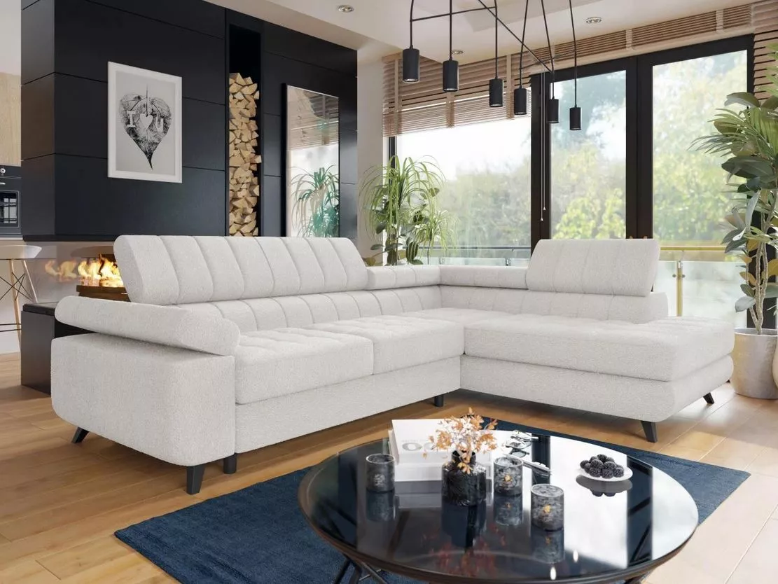 Rozkládací rohová sedačka s úložným prostorem OKLAHOMA - bílá, pravý roh