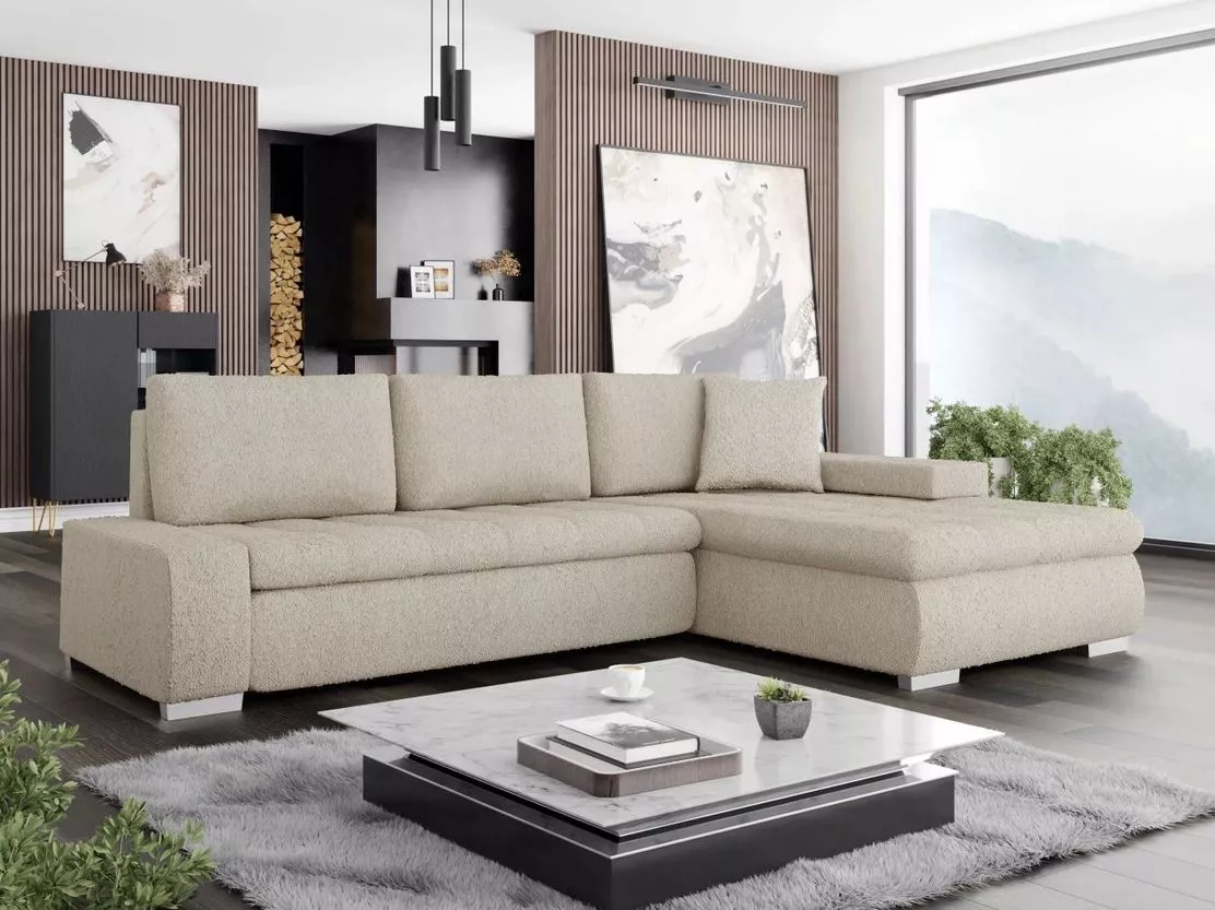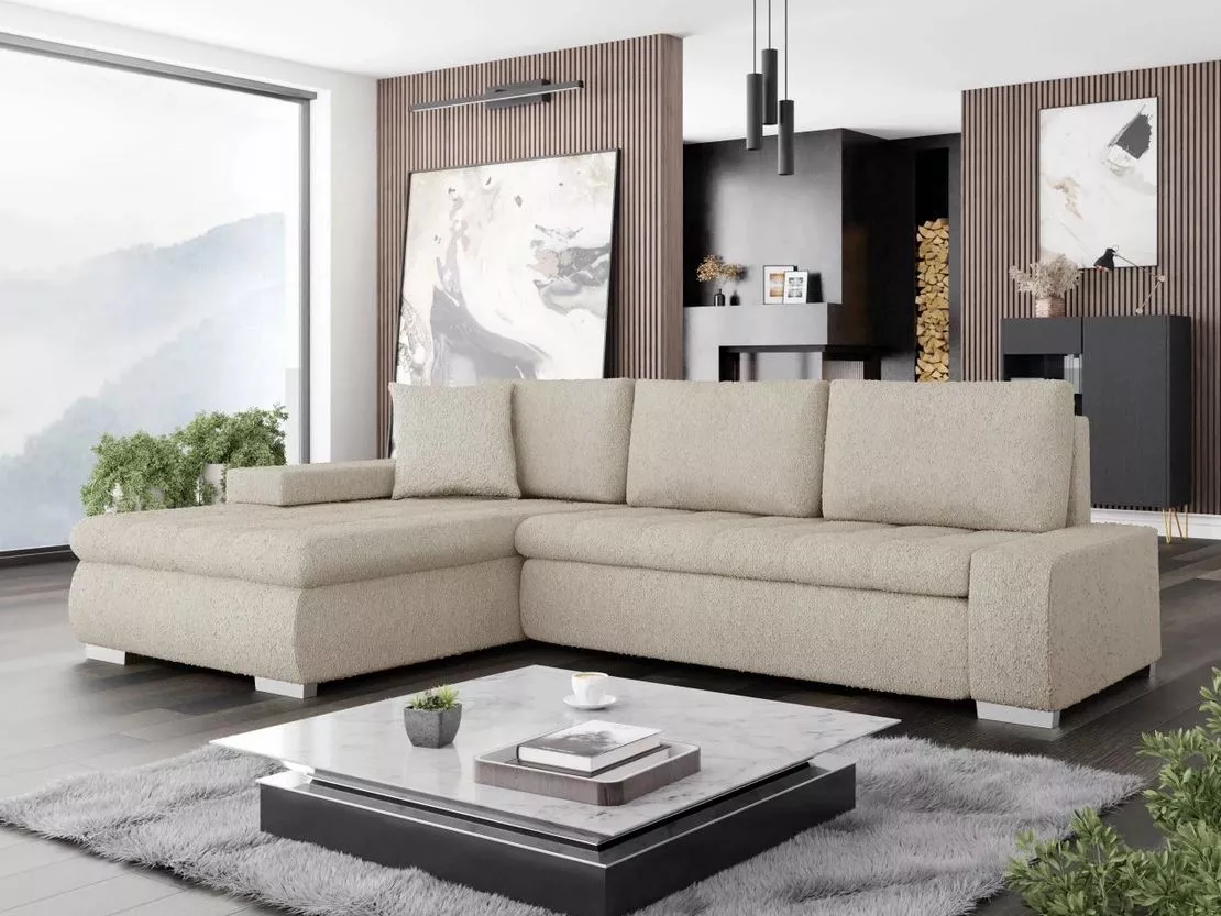 Rohová sedačka na každodenní spaní ABEL 2 - světlá béžová