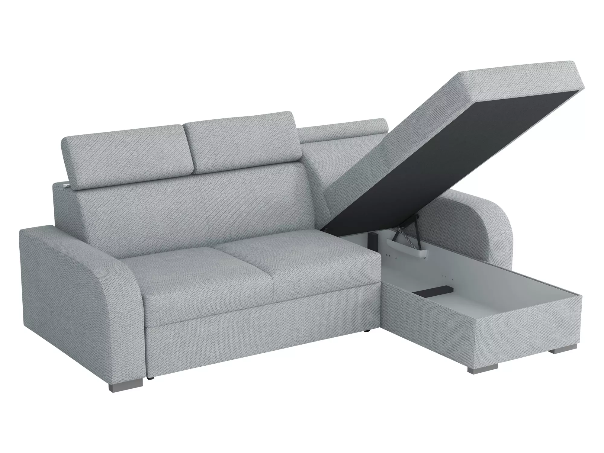 Rohová sedačka HACARI je vybavena funkcí každodenního spaní o spací ploše 130x200 cm a praktickým úložným prostorem na lůžkoviny. Další výhodou sedací soupravy je možnost polohování opěrek hlavy, které zvyšují pocit pohodlí a podporují relaxaci po náročném dni.