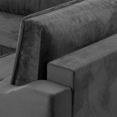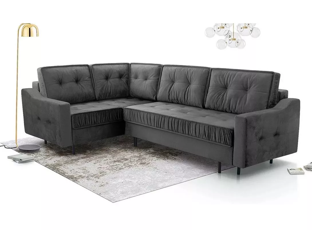 Rohová sedačka LAREDO je skvělou volbou do obývacího pokoje zařízeném v klasickém, moderním a glamour stylu. Jemné prošívání a nařasené detaily dodávají sedačce jedinečný vzhled. Praktické úložné prostory a možnost každodenního spaní na lůžku o rozměrech 147x250 cm činí ze sedačky ideální volbu pro pohodlné bydlení s multifunkčním využitím.