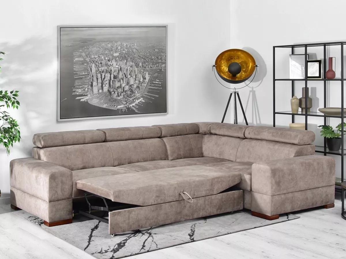 Rozkládací sedací souprava ANIELKA vyniká svou pevnou a odolnou dřevěnou konstrukcí. Vyznačuje se spací plochou 125x210 cm, úložným prostorem a nastavitelnými opěrkami hlavy.