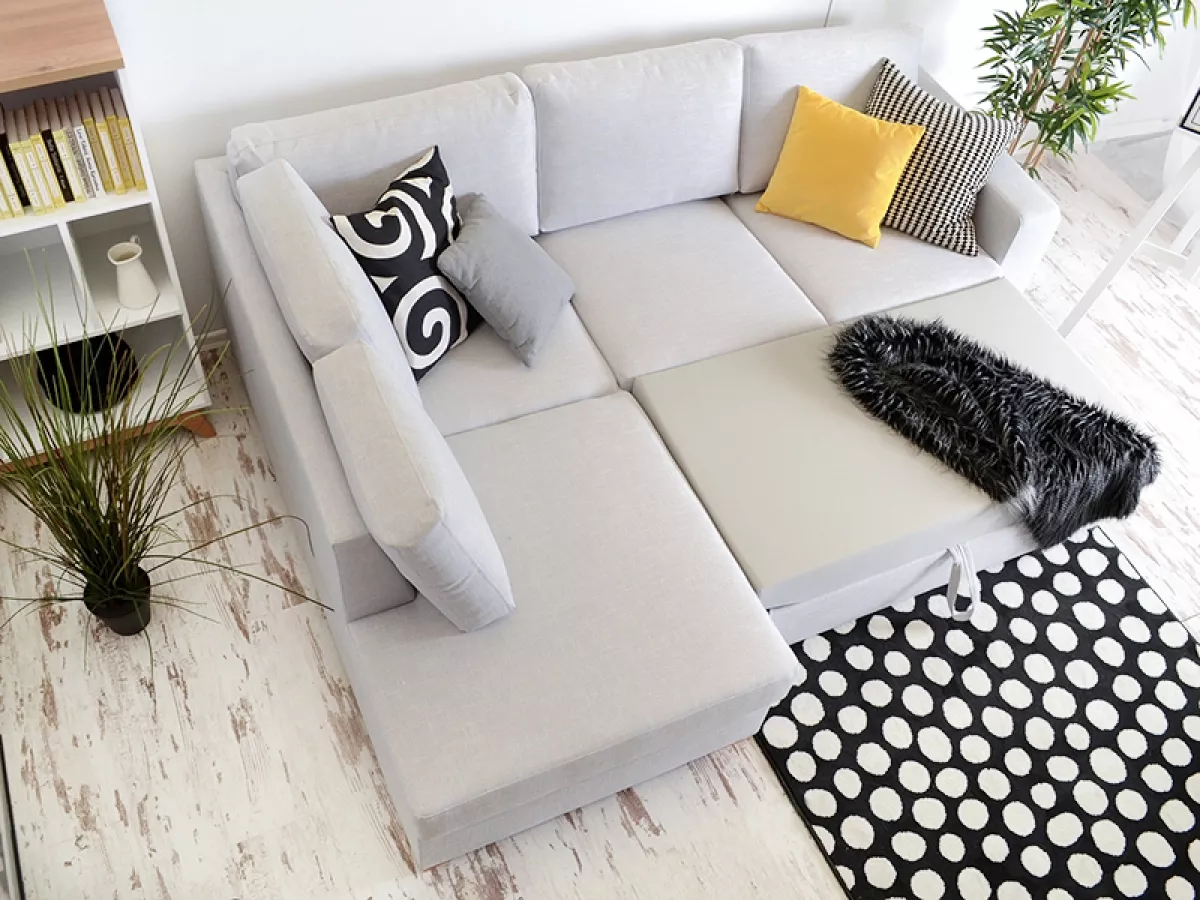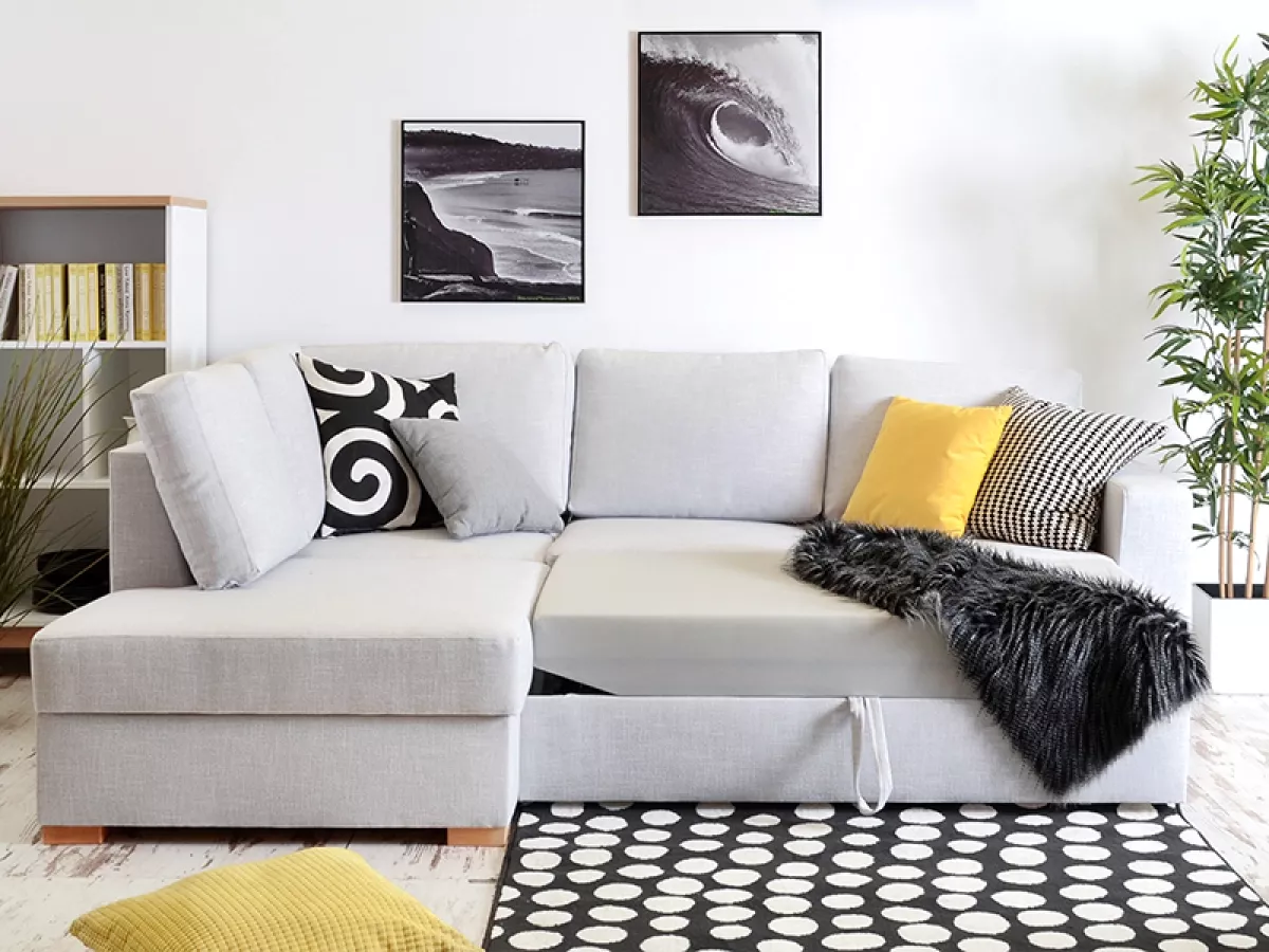 Rohová sedací souprava OMARA má pohodlné sedáky a taky opěrky zad v podobě 5 polštářů, které umožnují příjemné sezení v průběhu celého dne. Výhodou je zabudovaný úložný prostor a možnost rozložení sedačky.