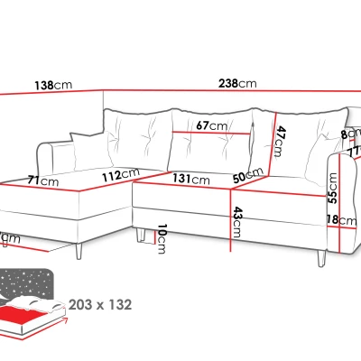 Výběrem rohové sedací soupravy EXETER získáte prostor, kde si se svými blízkými vytvoříte nezapomenutelné vzpomínky. Prostorný sedák a pohodlné opěradlo zajistí klidný odpočinek, možnost rozložení na spací lůžko 132x203 cm zas pohodlný spánek. Samozřejmostí je úložný prostor pro úschovu lůžkovin.