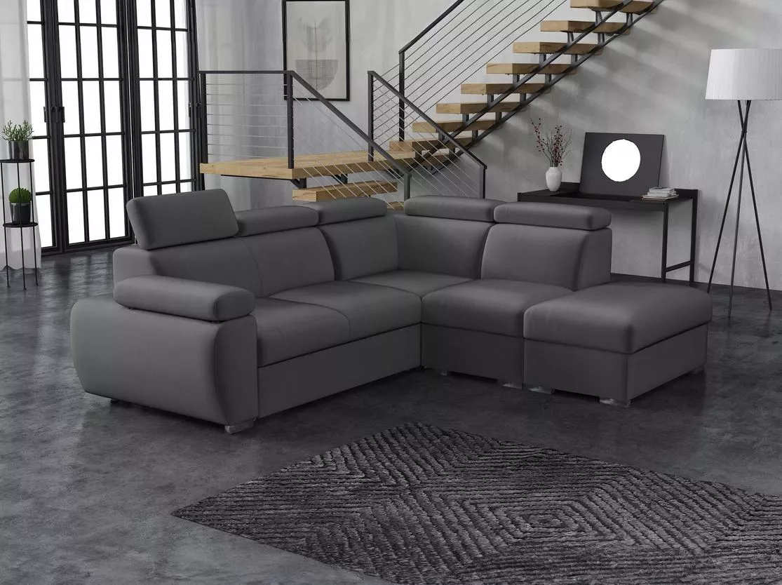 Rohová sedací souprava ORITUKO kombinuje elegantní design, pohodlí a praktičnost, díky čemuž se stane dominantou každého obývacího pokoje. Příjemné čalounění zajišťuje maximální komfort pro každodenní odpočinek, zatímco díky funkci spaní sedačku během chvíle proměníte v pohodlné lůžko. Součástí jsou 2 úložné prostory, které nabízí místo pro lůžkoviny nebo jiné potřeby. Nastavitelné opěrky hlavy pak poskytují další úroveň komfortu, ať už odpočíváte vsedě nebo vleže.