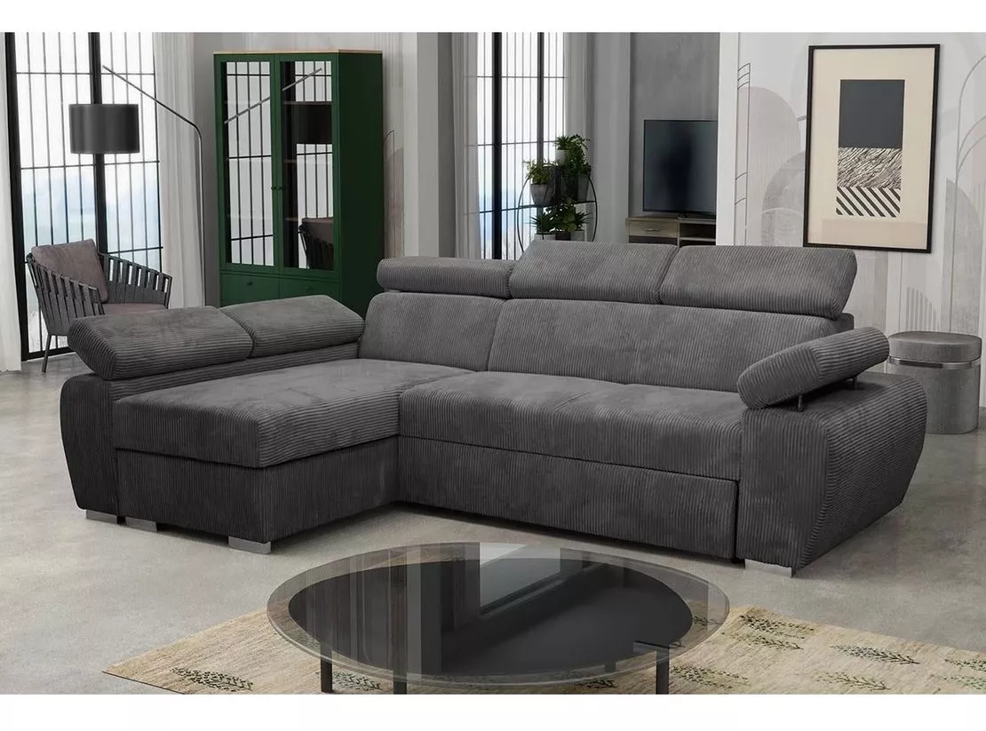 Moderní rohová sedačka spojuje stylový design s maximální funkčností. Nabízí praktický úložný prostor pro uschování dek, polštářů či dalších věcí a polohovatelné opěrky hlavy, které zajistí pohodlí na míru. Díky funkci rozkládání na lůžko o rozměrech 130x200 cm je ideální pro každodenní spaní.