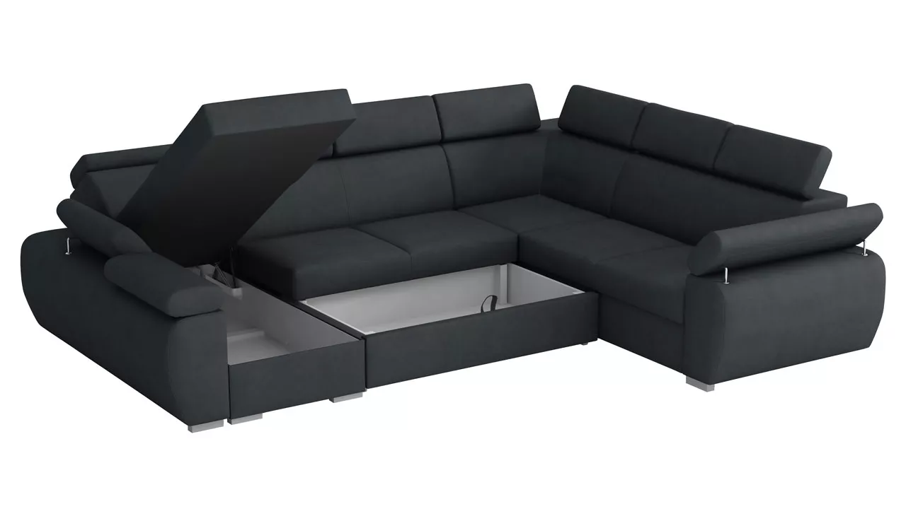 Rohová sedací souprava do U ORITUKO se stane dominantou vašeho obývacího pokoje, kde vytvoří útulnou atmosféru. Sedačku lze rozložit na spací lůžko o rozměrech 130x190 cm, navíc je vybavena úložným prostorem. Polohovatelné opěrky hlavy pomáhají snížit únavu krku a zad, takže si můžete užít skutečně hluboký odpočinek.