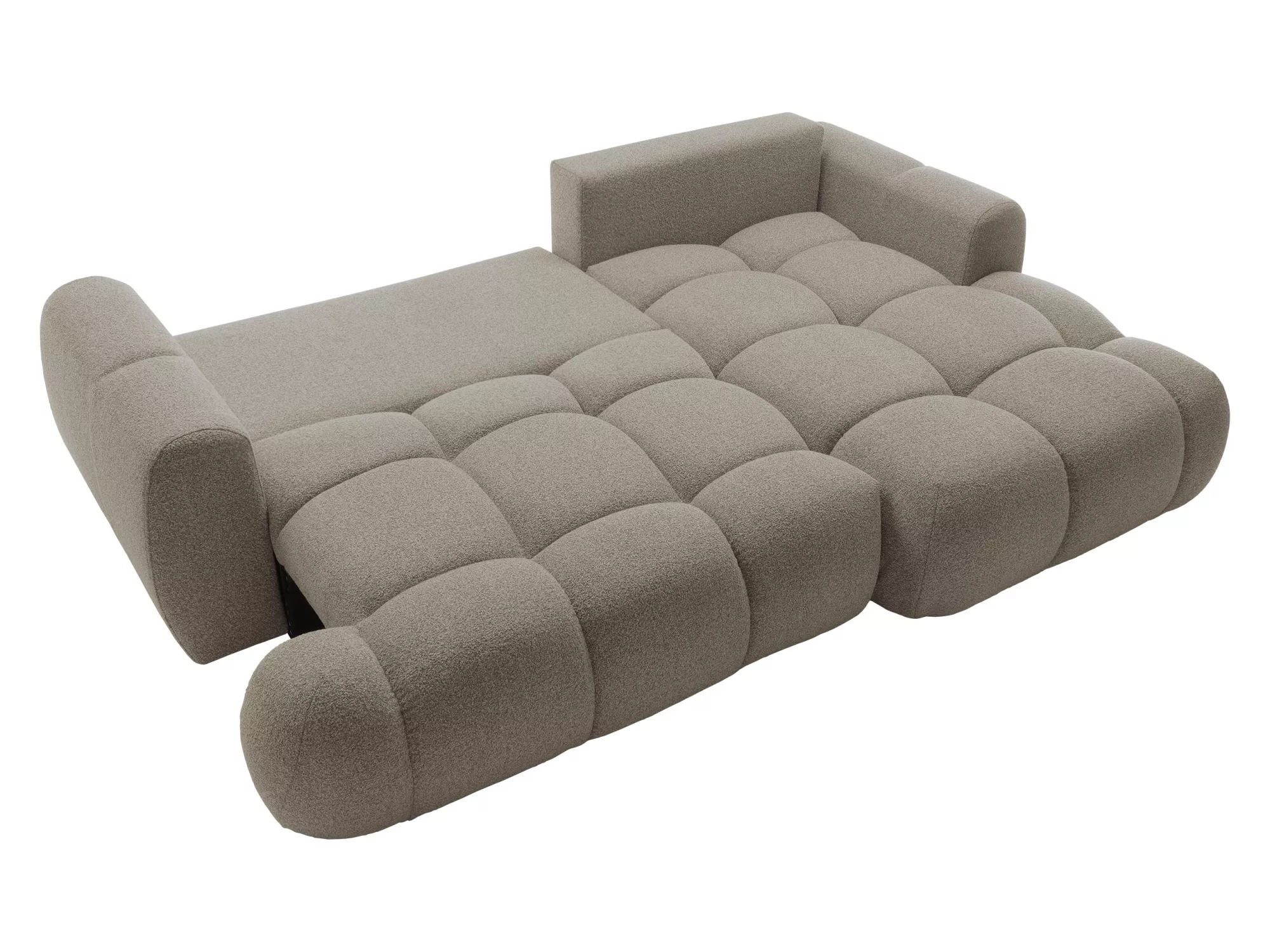 Rohová sedačka ERBIN zaujme elegantními zaoblenými tvary, které interiéru dodají lehkost a útulnost. Sedačku snadno přeměníte na pohodlné lůžko o rozměrech 140x210 cm, přičemž úložný prostor poskytne dostatek místa pro úschovu peřin a dek. Volně ložené opěrné polštáře se zipem zajišťují maximální pohodlí i snadnou údržbu.