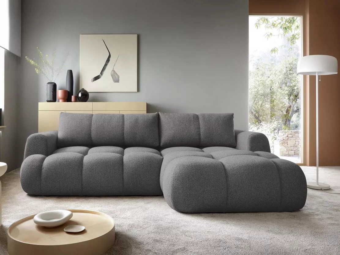 Rohová sedačka ERBIN zaujme elegantními zaoblenými tvary, které interiéru dodají lehkost a útulnost. Sedačku snadno přeměníte na pohodlné lůžko o rozměrech 140x210 cm, přičemž úložný prostor poskytne dostatek místa pro úschovu peřin a dek. Volně ložené opěrné polštáře se zipem zajišťují maximální pohodlí i snadnou údržbu.