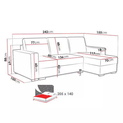 Elegantní tvar, praktické využití a minimalistický design sedací soupravy BUCKY přináší nový rozměr pohodlí i stylu. Ideální pro chvíle s oblíbenou knihou, sledování filmů nebo zasloužený odpočinek. Díky možnosti rozložení na lůžko o rozměrech 140x205 cm snadno vytvoří pohodlné místo pro přespání hostů. Vestavěné úložné prostory navíc poskytují praktické místo pro přikrývky, ložní prádlo a polštáře.