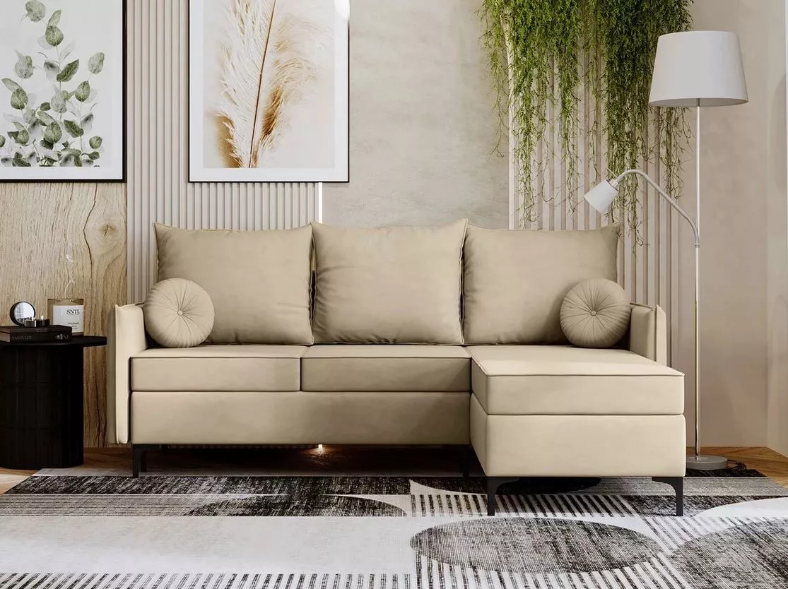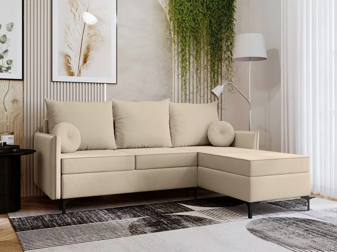 Rozkládací rohová sedací souprava HARPERO - světlá béžová, pravý roh