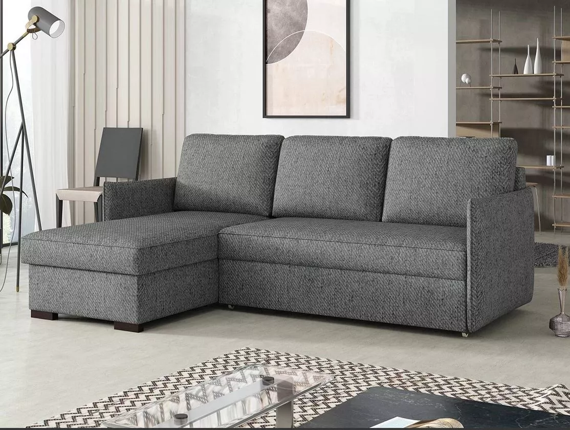 Rozkládací sedačka SANDATILO vytvoří ve vašem obývacím pokoji jedinečnou relaxační zónu. Příjemné čalounění a měkký sedák poskytují maximální pohodlí při odpočinku. Díky snadnému rozkládacímu mechanismu sedačku během okamžiku přeměníte na lůžko o spací ploše 137×202 cm, ideální pro každodenní spaní i nečekané návštěvy. Praktický úložný prostor zajistí dostatek místa pro lůžkoviny a další nezbytnosti. Opěrné polštáře umožňují individuální nastavení pro optimální oporu zad a ještě větší komfort při sezení i ležení.