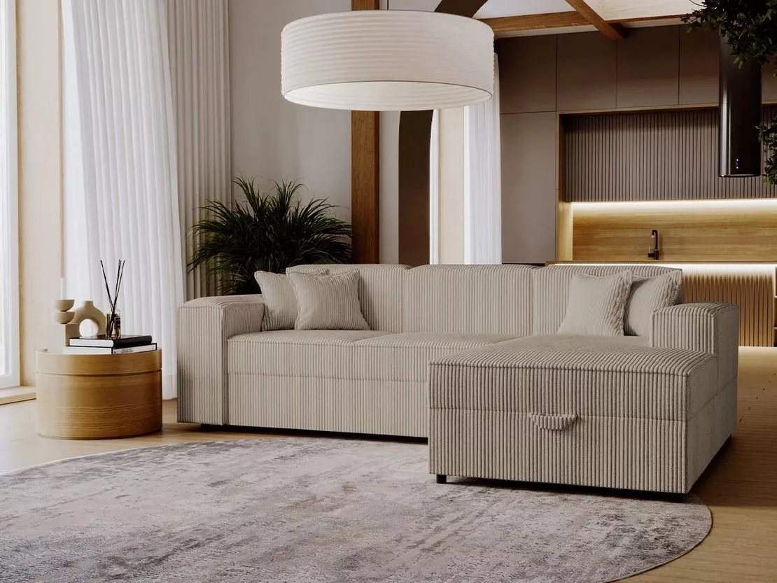Rohová sedačka na každodenní spaní BOKSIA - béžová, pravý roh
