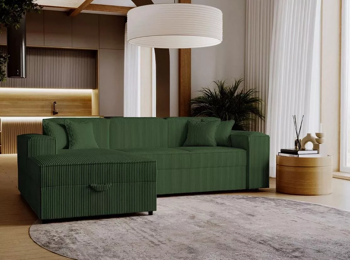 Rohová sedačka na každodenní spaní BOKSIA - zelená, levý roh