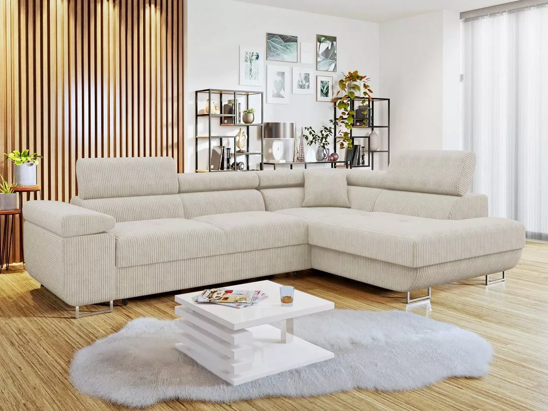Rozkládací rohová sedačka LABUS - špinavá bílá, pravý roh