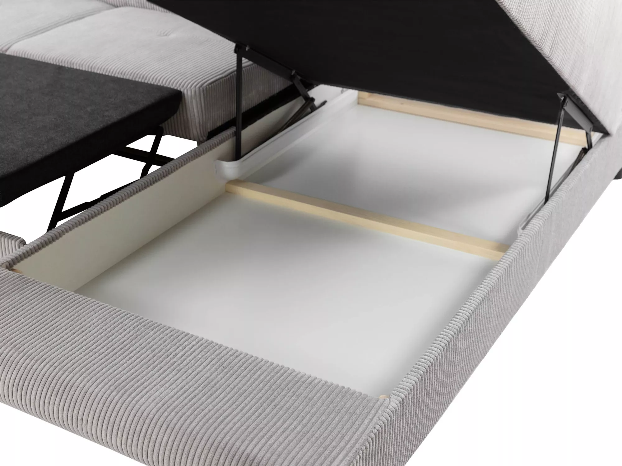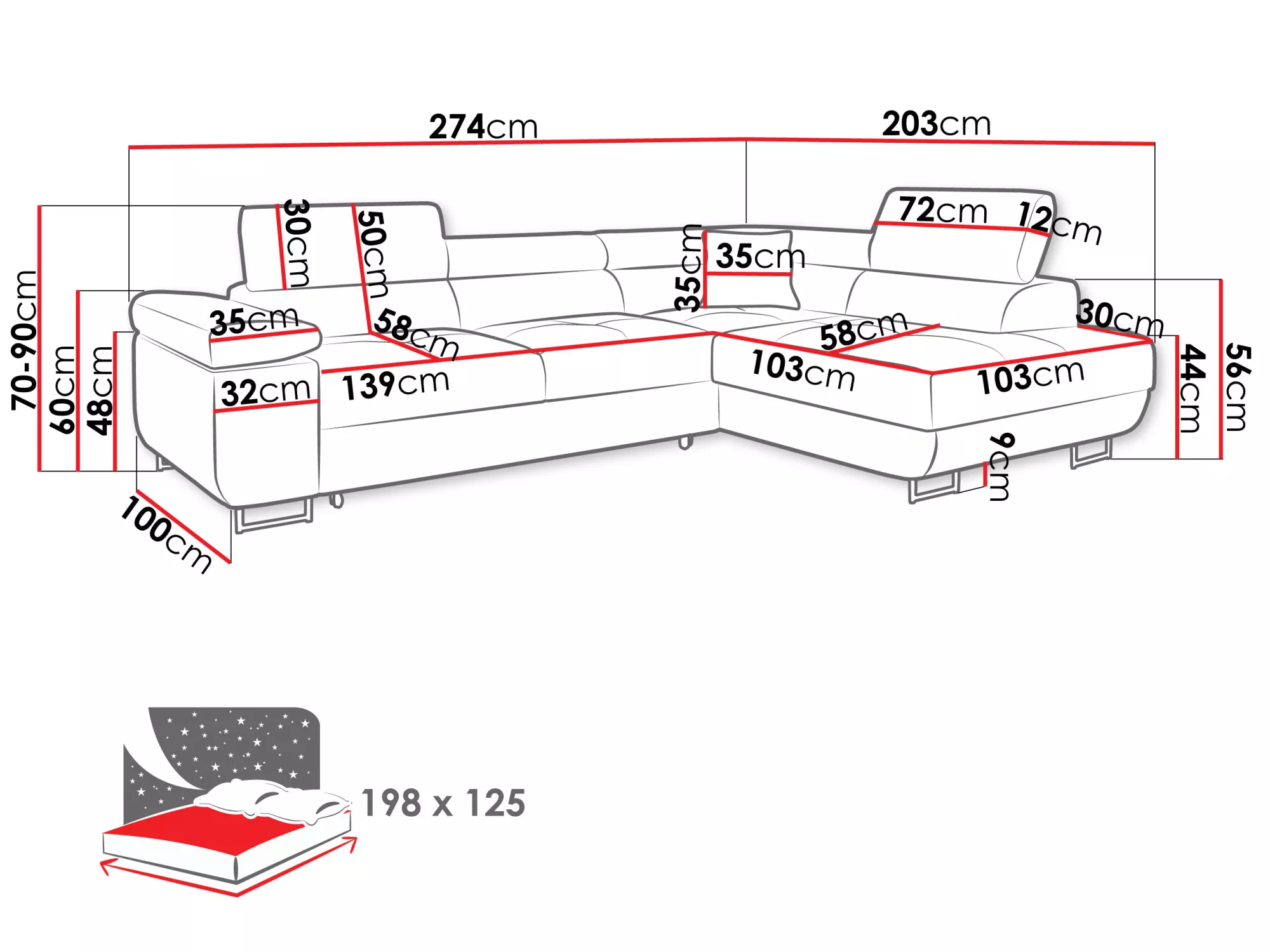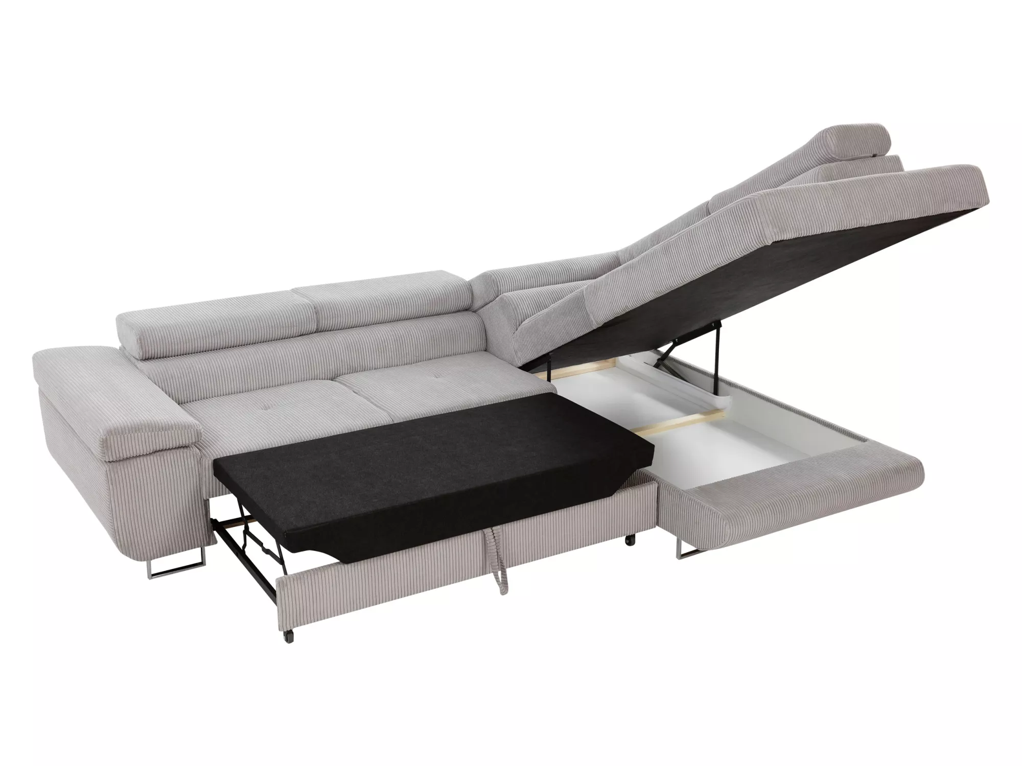 Rohová rozkládací sedačka LABUS nabízí funkci každodenního spaní o lůžku 125x198 cm a praktický úložný prostor. Jistě oceníte polohovatelné opěrky hlavy pro maximální komfort při relaxaci. Zadní část sedačky je čalouněná látkou, což umožňuje její umístění kdekoli v místnosti.