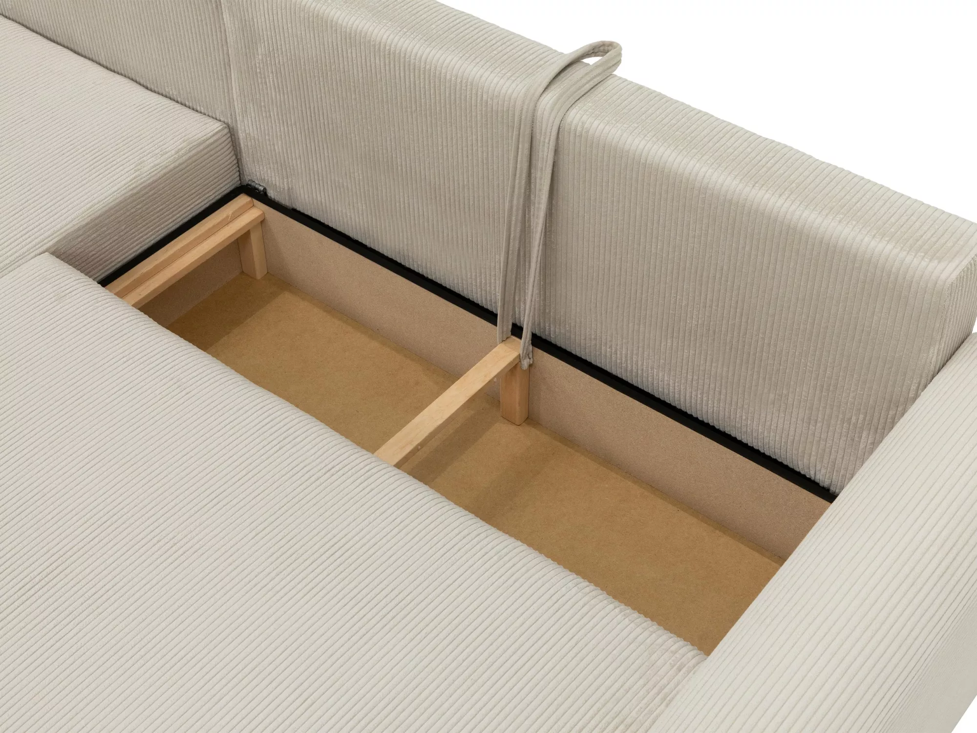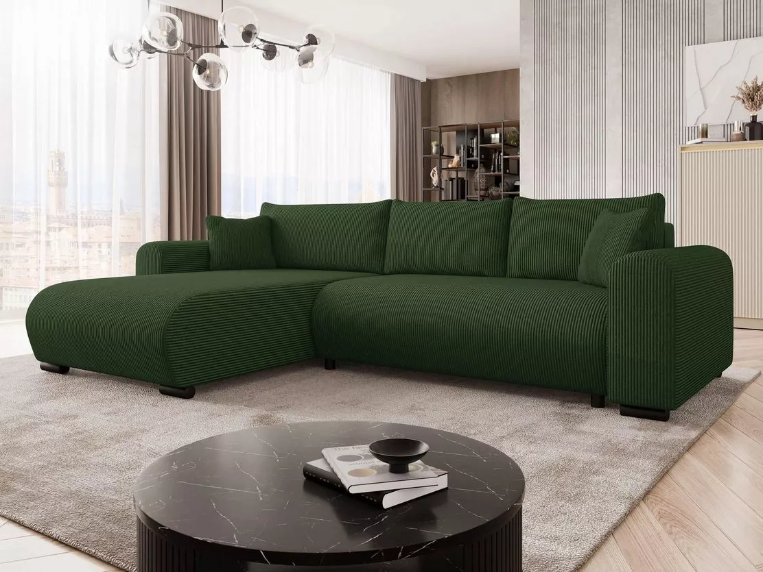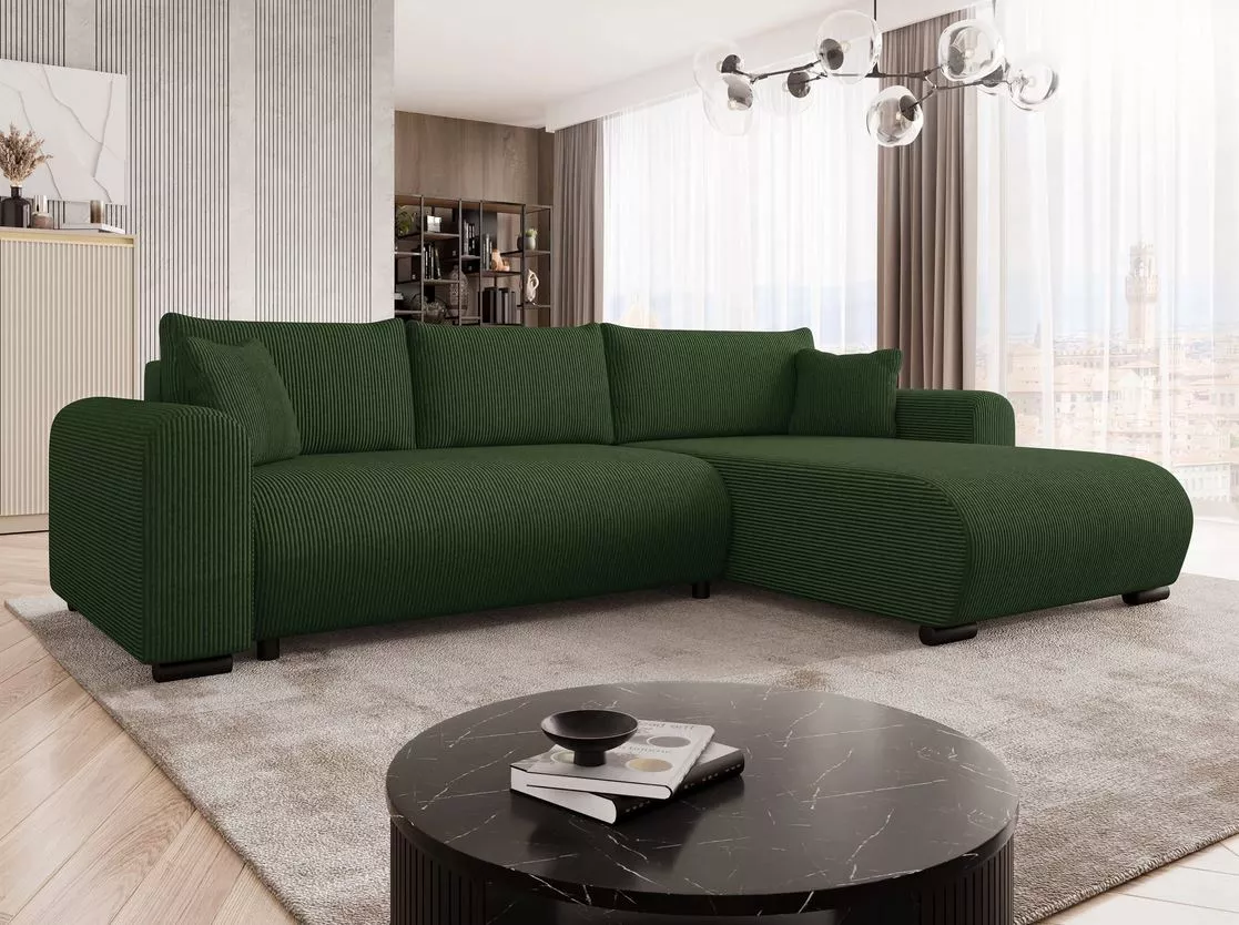 Rohová sedací souprava KANOPE přináší do vašeho domova maximální komfort a funkčnost. Díky rozkládací funkci poskytne prostorné lůžko o rozměrech 135×240 cm, zatímco úložný prostor zajistí místo pro lůžkoviny. Volně ložené opěrné polštáře umožňují maximální komfort při sezení i relaxaci. Sedačku můžete umístit kamkoli v obývacím pokoji a přizpůsobit si prostor podle svých potřeb.