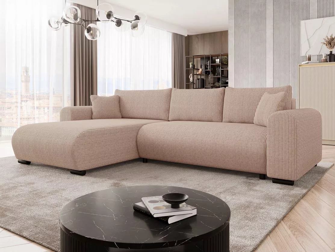Rohová sedací souprava KANOPE přináší do vašeho domova maximální komfort a funkčnost. Díky rozkládací funkci poskytne prostorné lůžko o rozměrech 135×240 cm, zatímco úložný prostor zajistí místo pro lůžkoviny. Volně ložené opěrné polštáře umožňují maximální komfort při sezení i relaxaci. Sedačku můžete umístit kamkoli v obývacím pokoji a přizpůsobit si prostor podle svých potřeb.