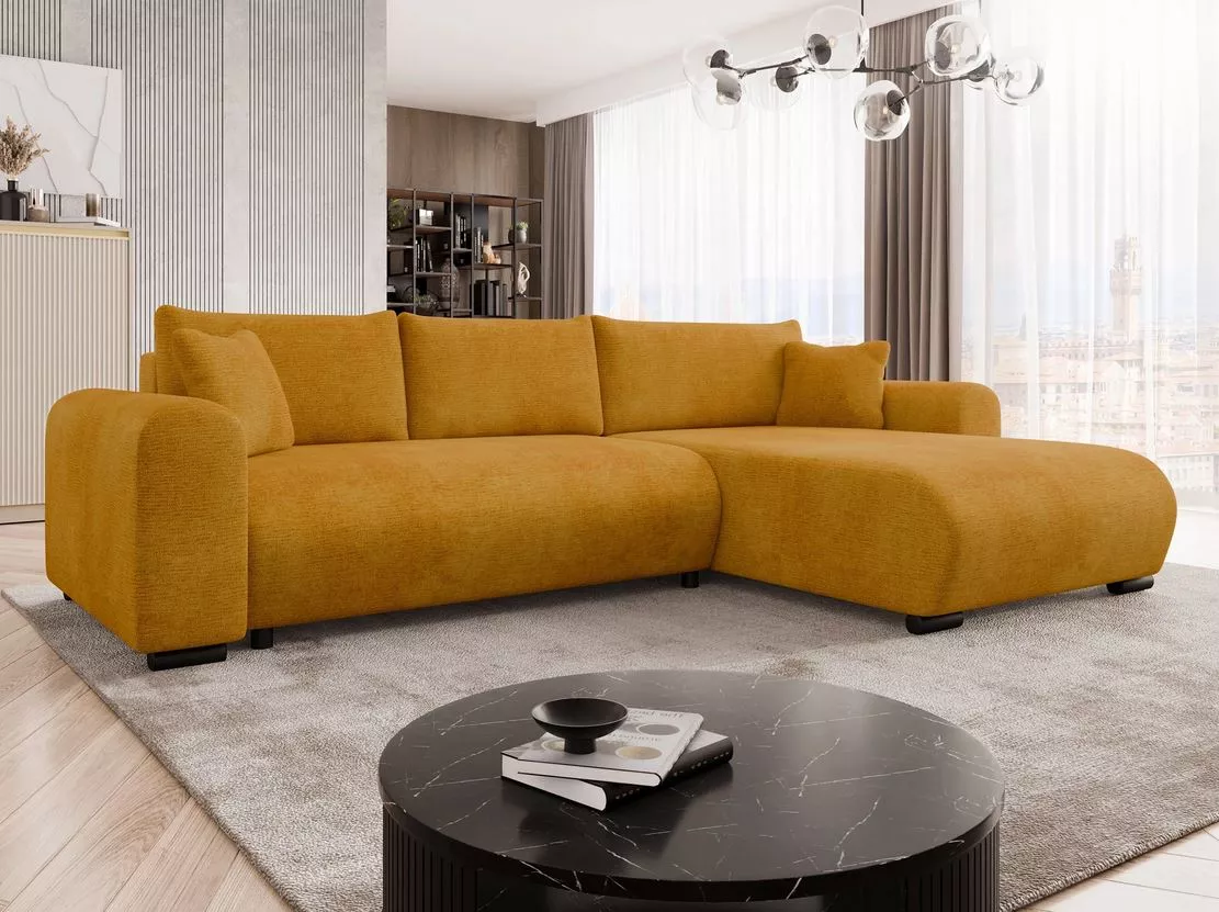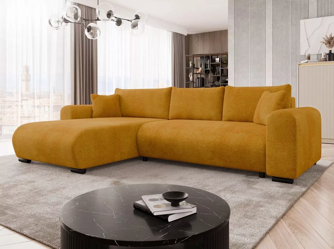 Rohová sedací souprava KANOPE přináší do vašeho domova maximální komfort a funkčnost. Díky rozkládací funkci poskytne prostorné lůžko o rozměrech 135×240 cm, zatímco úložný prostor zajistí místo pro lůžkoviny. Volně ložené opěrné polštáře umožňují maximální komfort při sezení i relaxaci. Sedačku můžete umístit kamkoli v obývacím pokoji a přizpůsobit si prostor podle svých potřeb.
