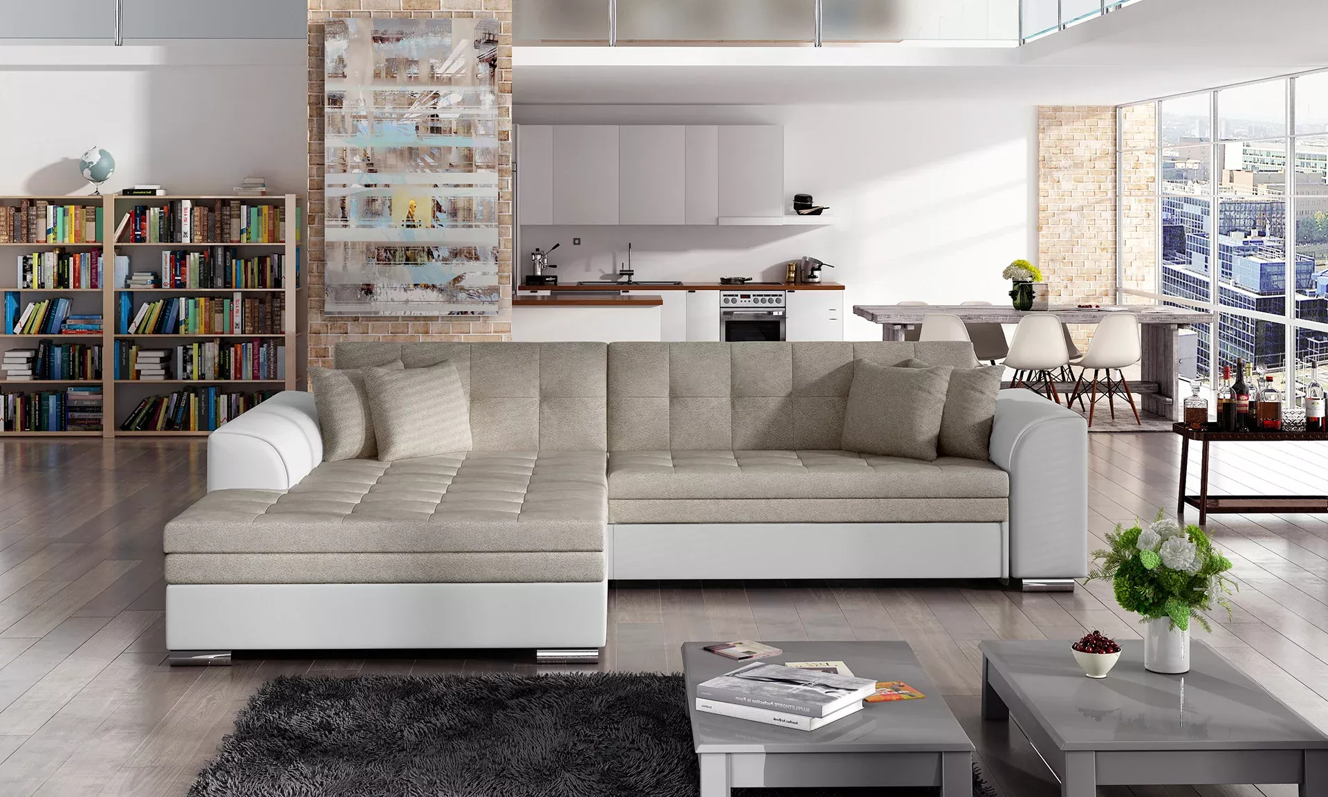Rohová sedací souprava SANGITA 1 - bílá / béžová, levý roh