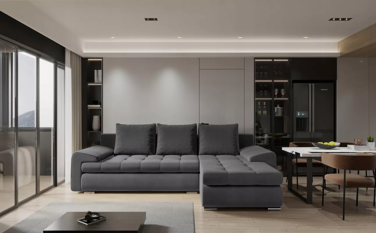 Rozkládací sedací souprava BIBIANA 1 - tmavě šedá, pravý roh