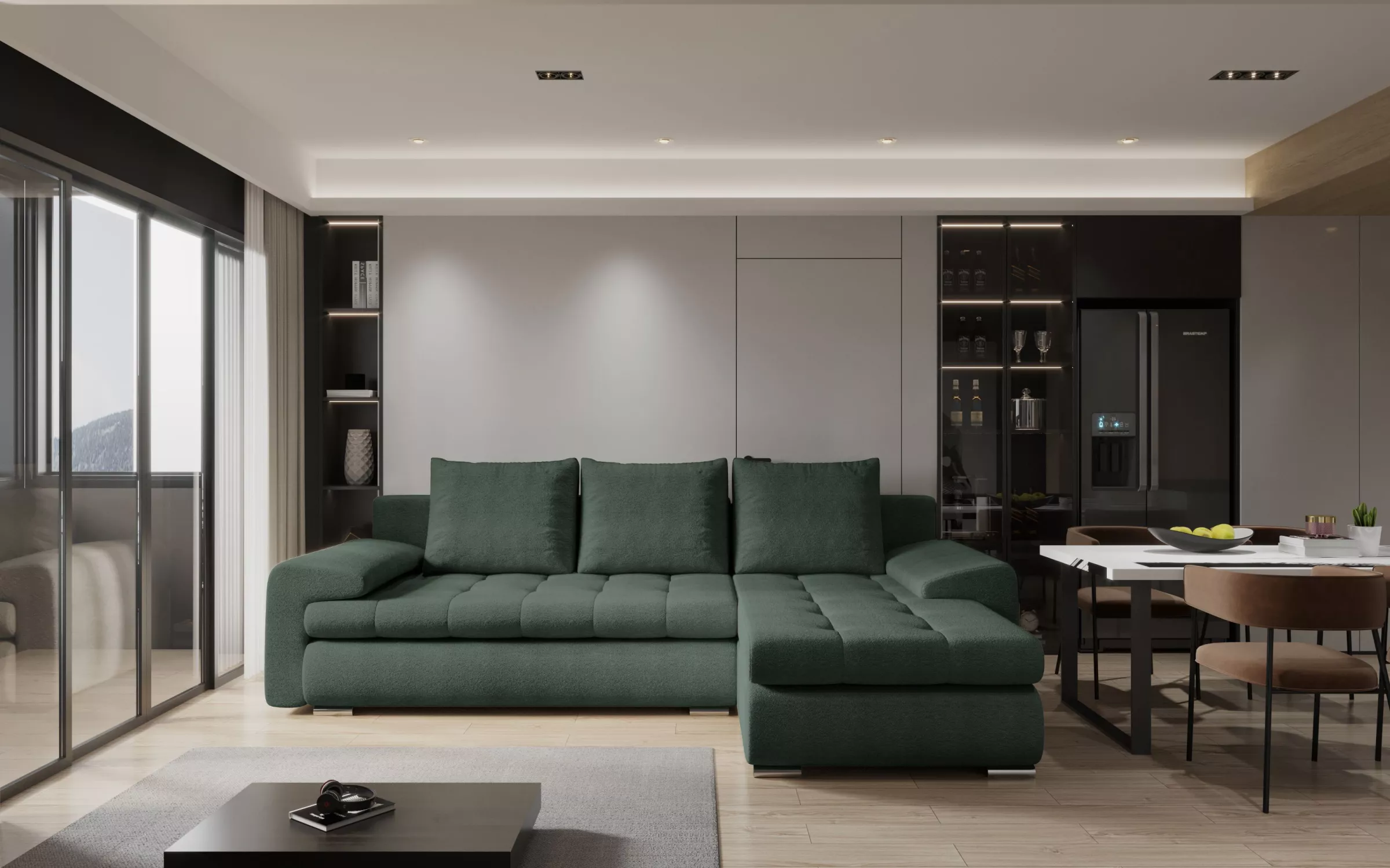 Rozkládací sedací souprava BIBIANA 2 - zelená, pravý roh