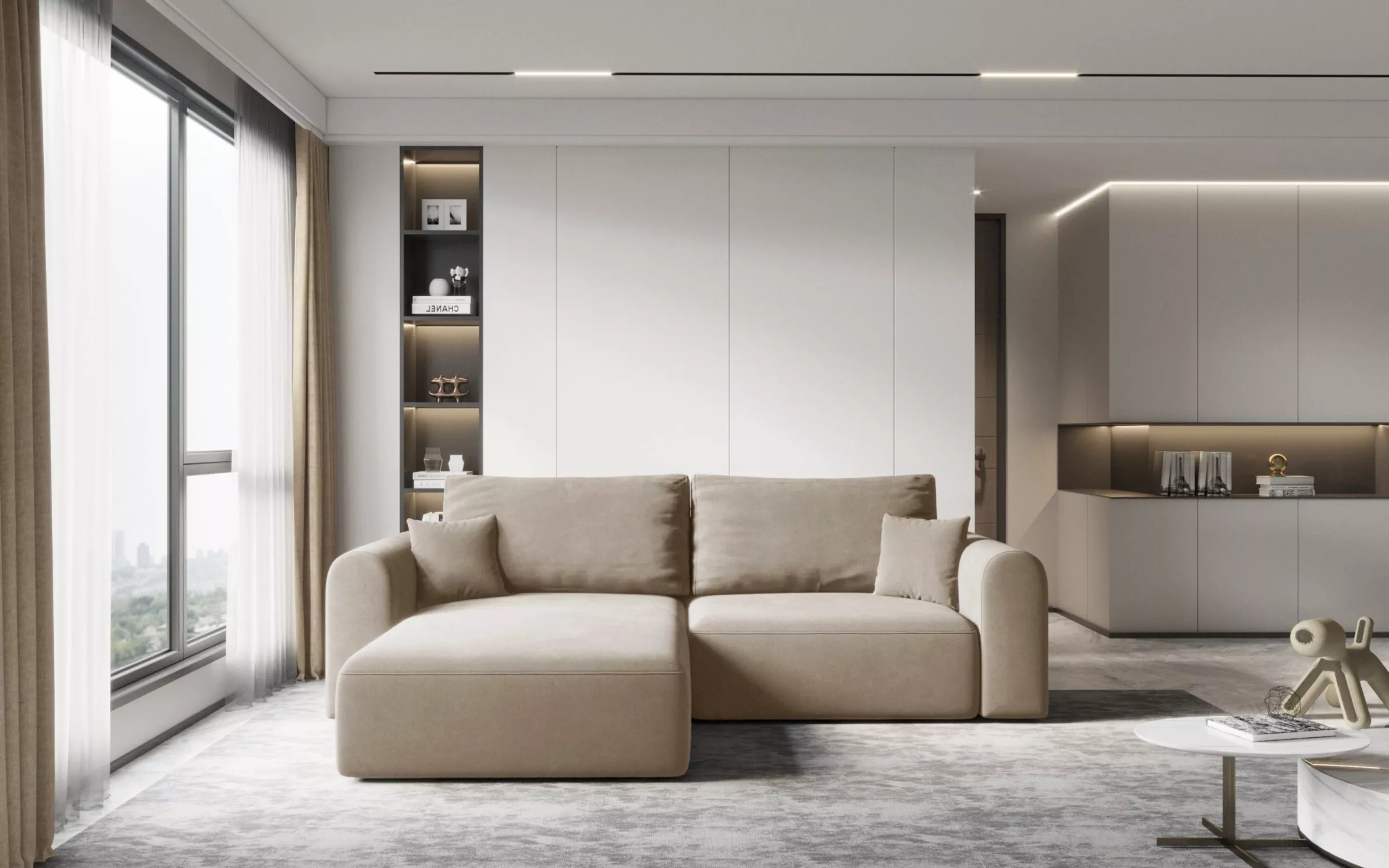 Rohová rozkládací sedací souprava ESTEL 1 - béžová, levý roh