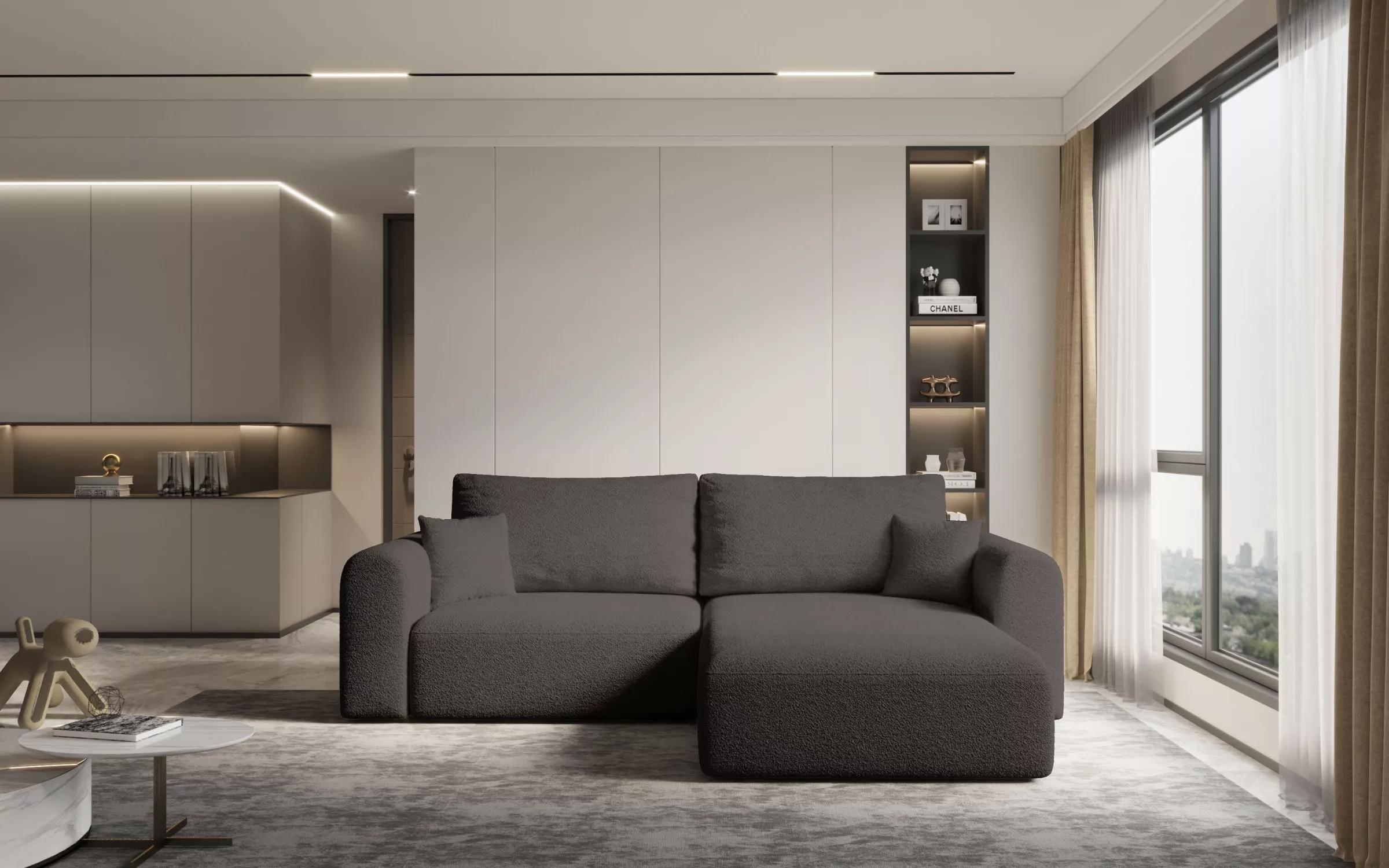 Rohová rozkládací sedací souprava ESTEL 2 v sobě spojuje maximální pohodlí s moderním designem, který vynikne v každém interiéru. Je vyrobena z prvotřídních materiálů, které zaručují dlouhou životnost a snadnou údržbu. Jistě oceníte také praktické funkce jako je možnost každodenního spaní na lůžku o rozměrech 122x198 cm a úložný prostor.