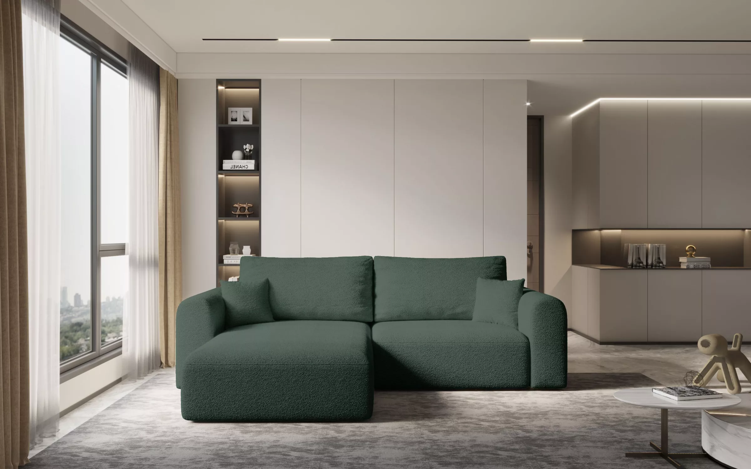 Rohová rozkládací sedací souprava ESTEL 2 - zelená, levý roh