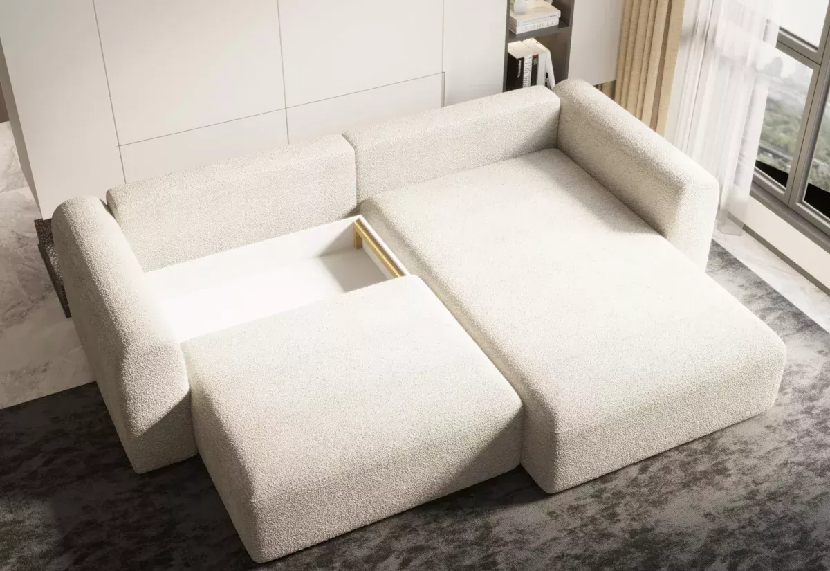 Rohová rozkládací sedací souprava ESTEL 2 v sobě spojuje maximální pohodlí s moderním designem, který vynikne v každém interiéru. Je vyrobena z prvotřídních materiálů, které zaručují dlouhou životnost a snadnou údržbu. Jistě oceníte také praktické funkce jako je možnost každodenního spaní na lůžku o rozměrech 122x198 cm a úložný prostor.
