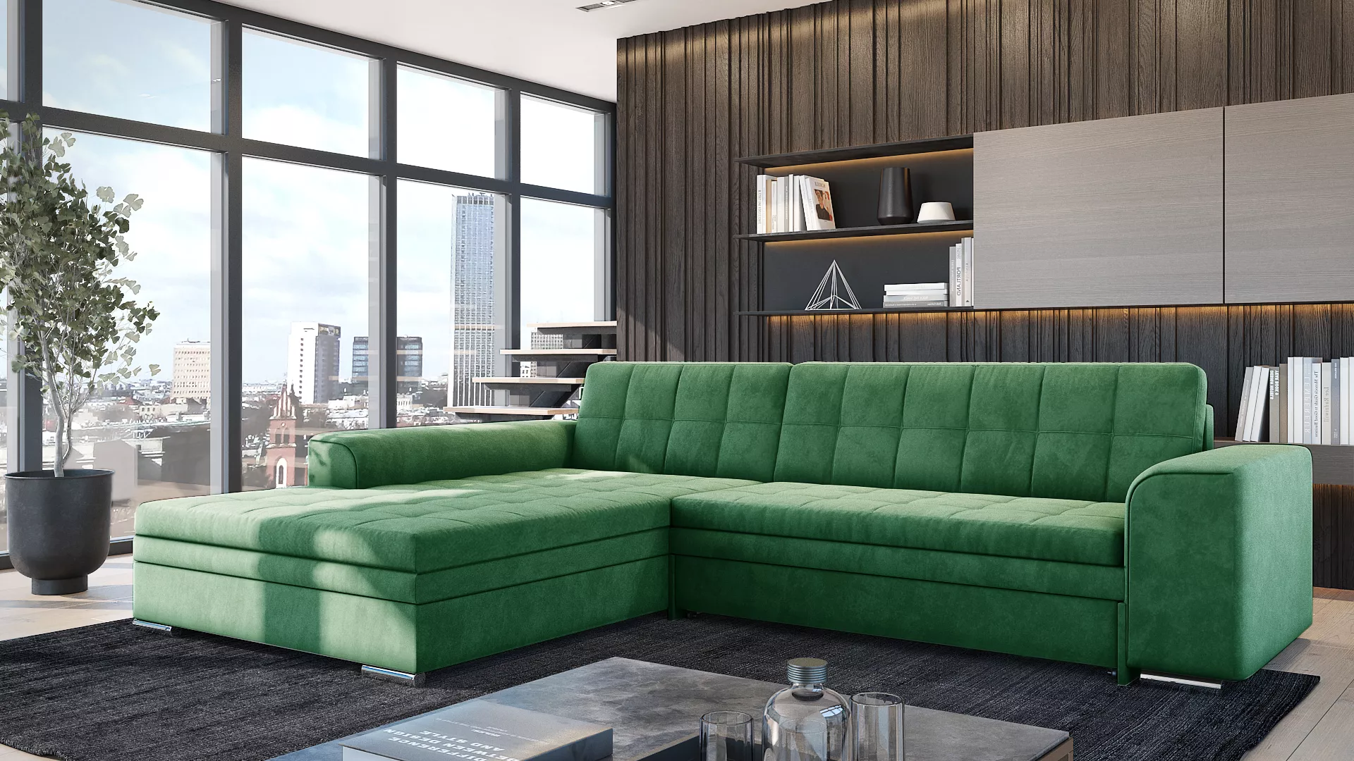 Rozkládací sedací souprava SANGITA 3 - zelená, levý roh