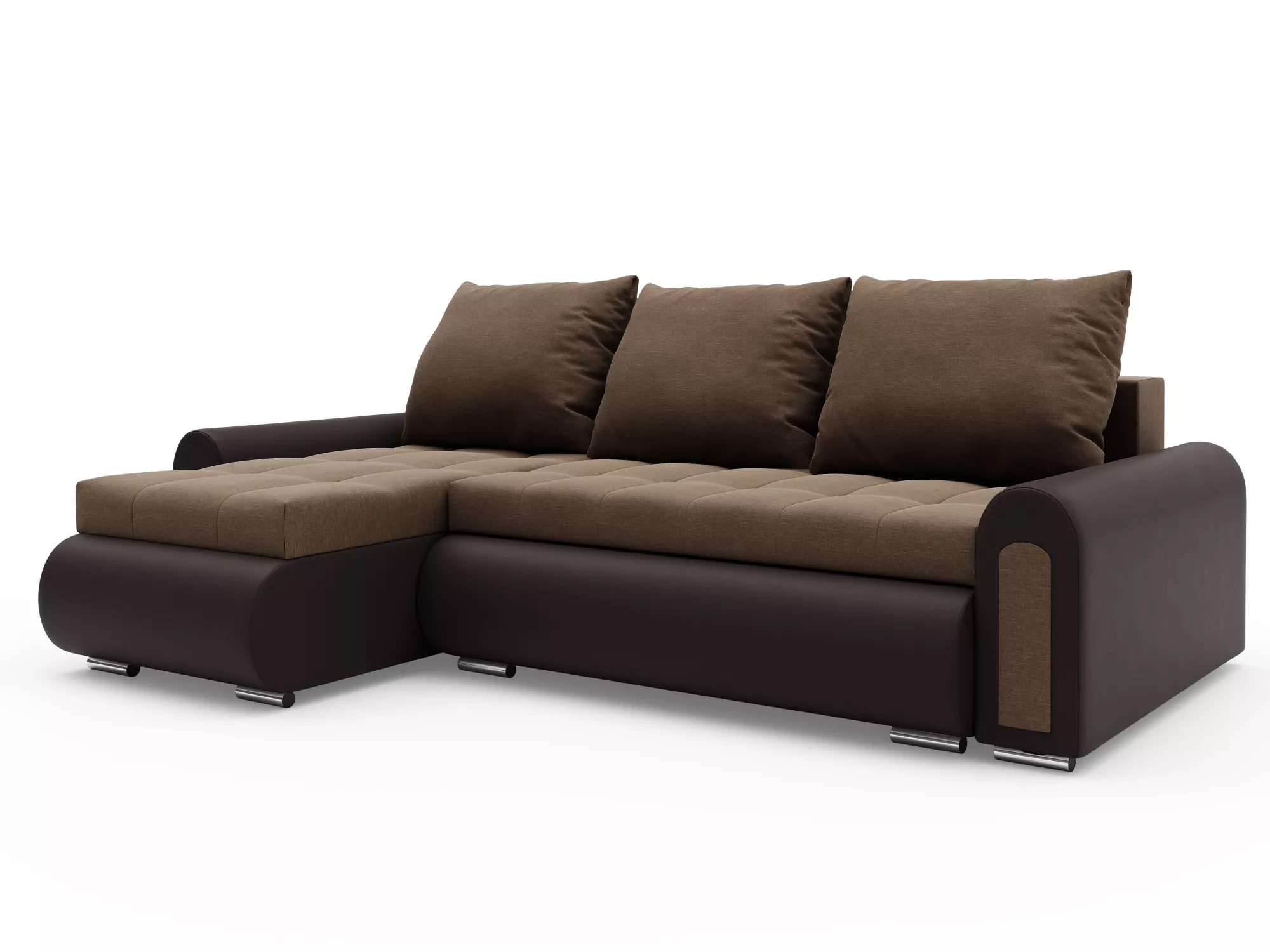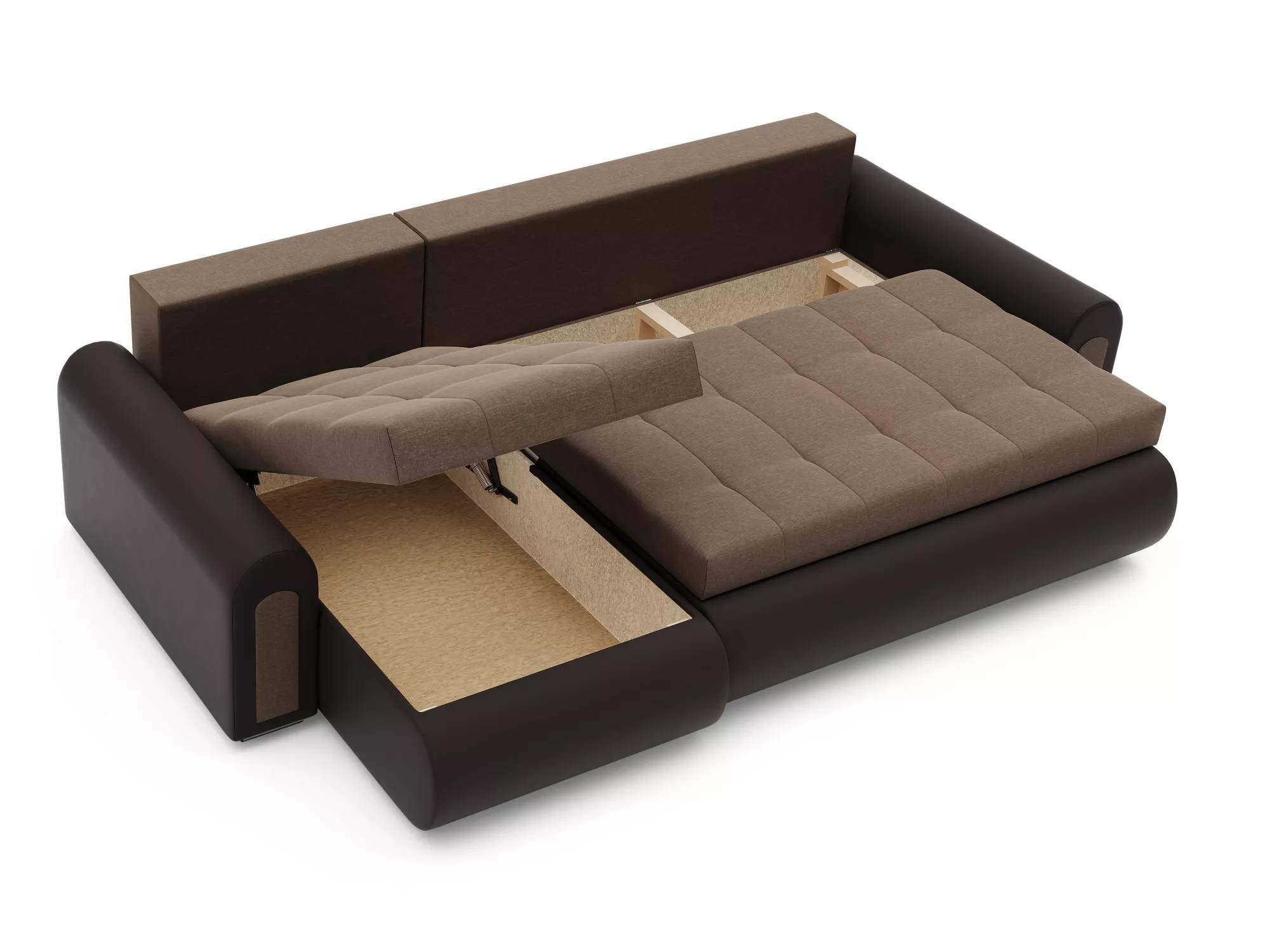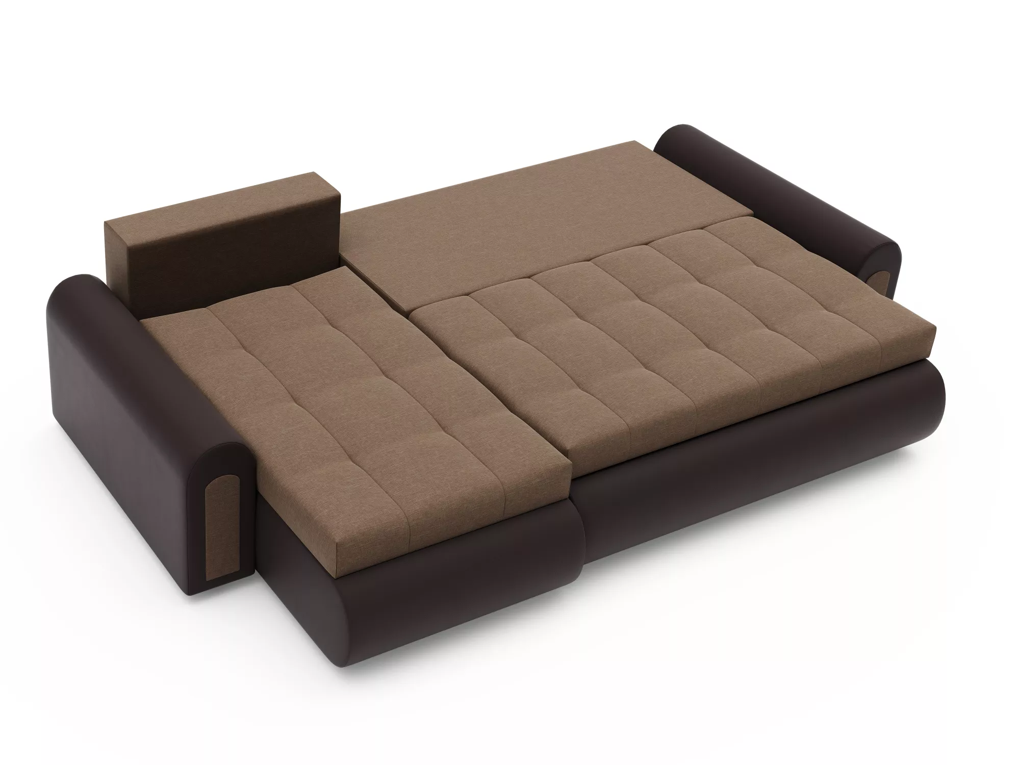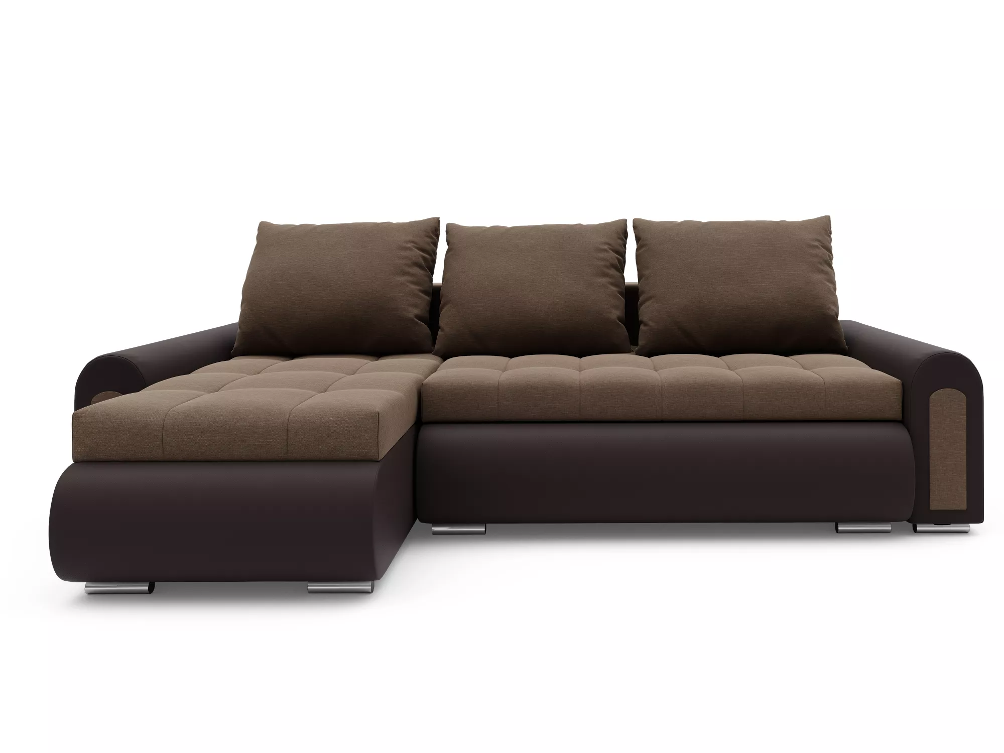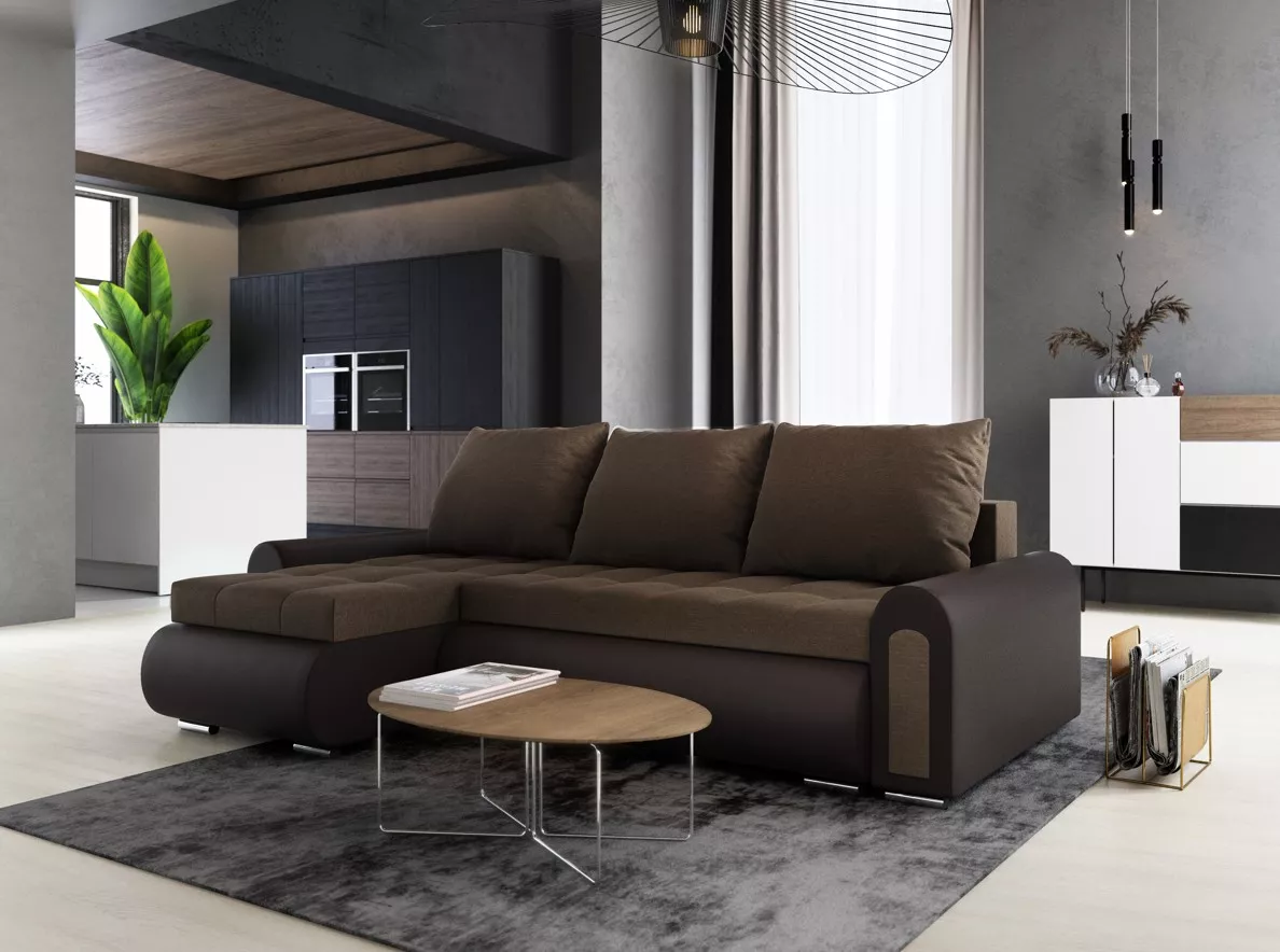 Rozkládací rohová sedací souprava EMBERLYN - hnědá ekokůže / béžová