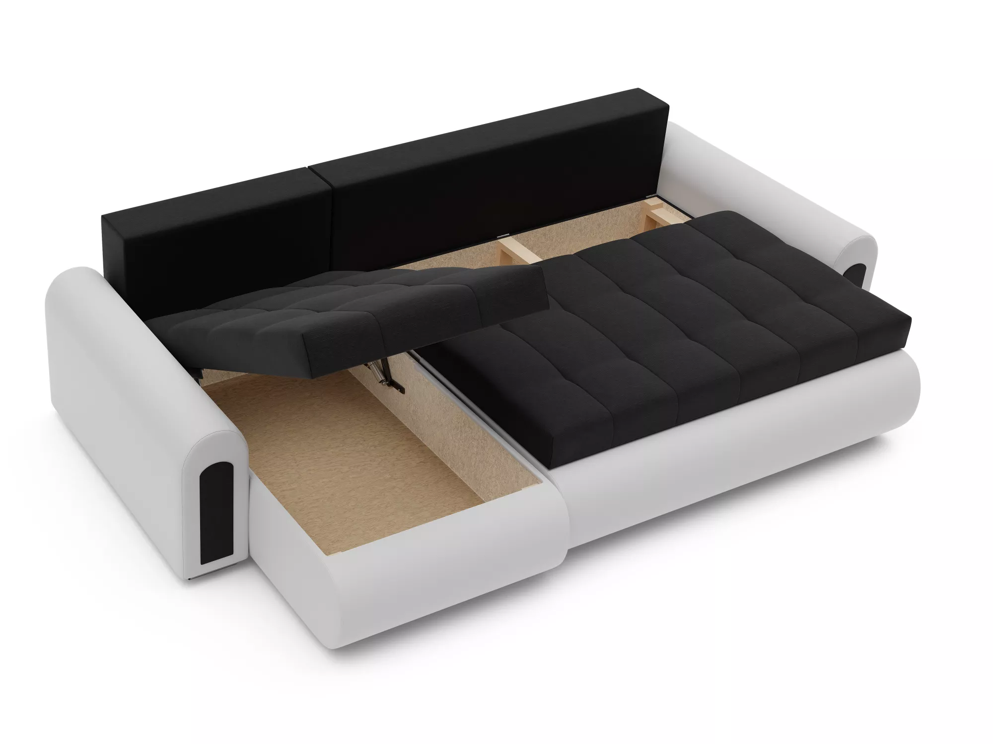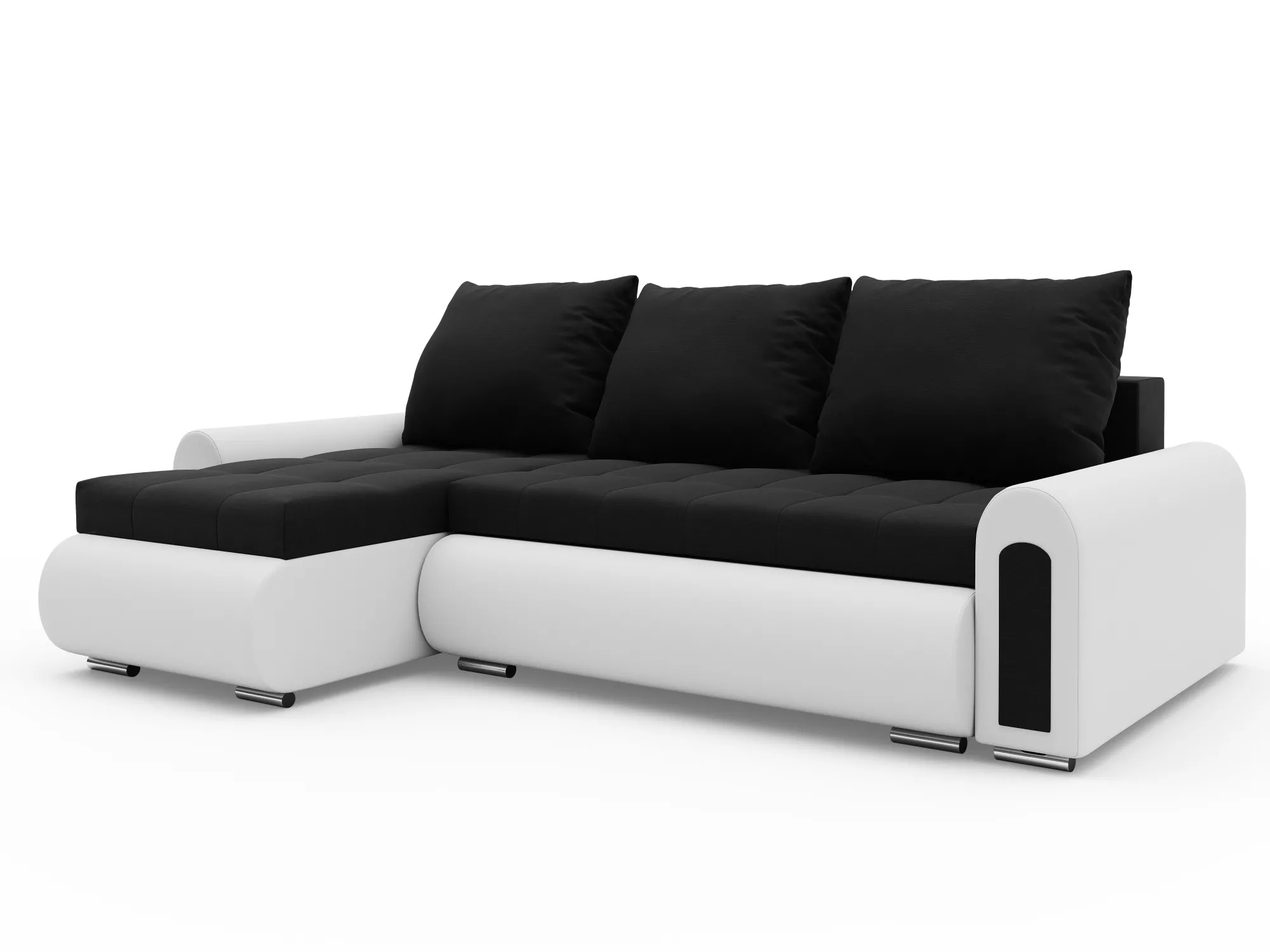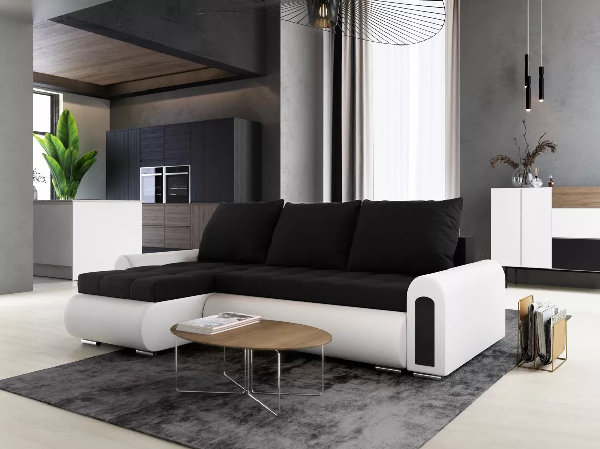 Rozkládací rohová sedací souprava EMBERLYN - bílá ekokůže / černá